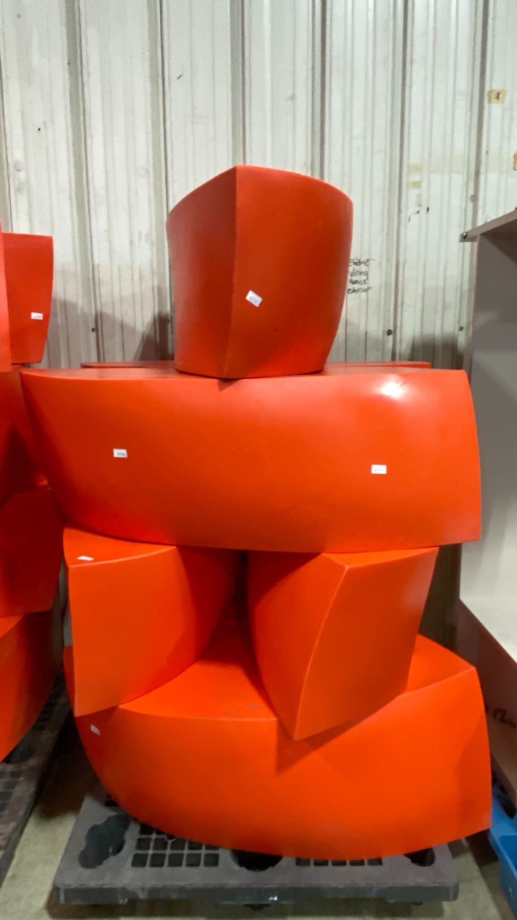 PALLET OF 7 RED MODERN PLASTIC 48"W X 19"D X 16"H RECEPTION / AREA SEATING