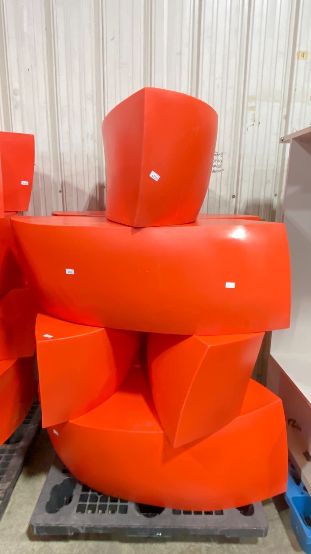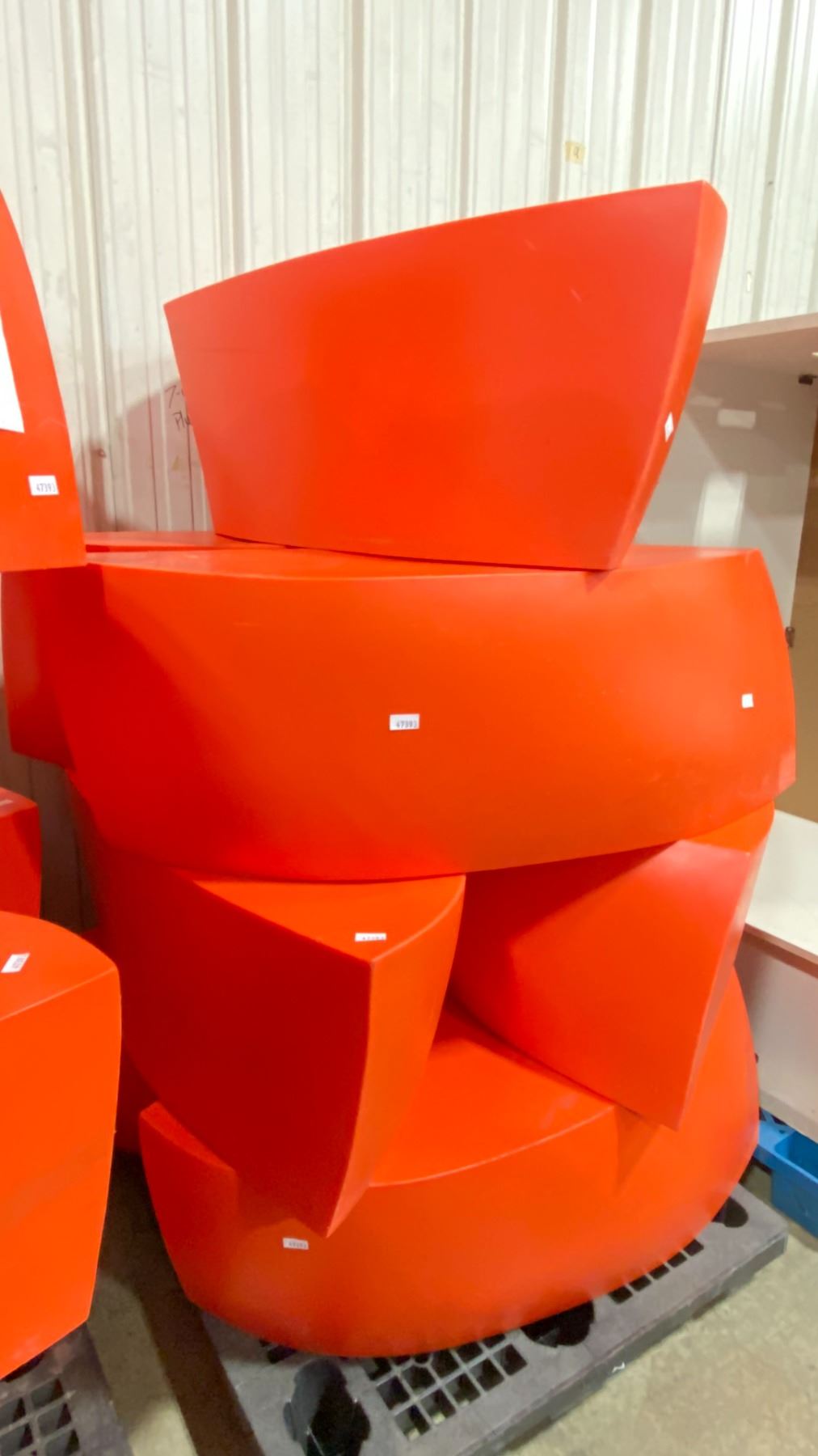 PALLET OF 7 RED MODERN PLASTIC 48 W X 19 D X 16 H RECEPTION / AREA SEATING