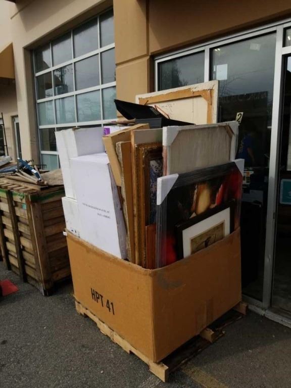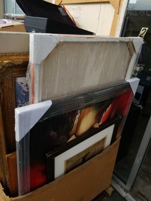 PALLET OF ARTWORK, LIGHTING, DEFECTIVE STORE RETURNS, ETC