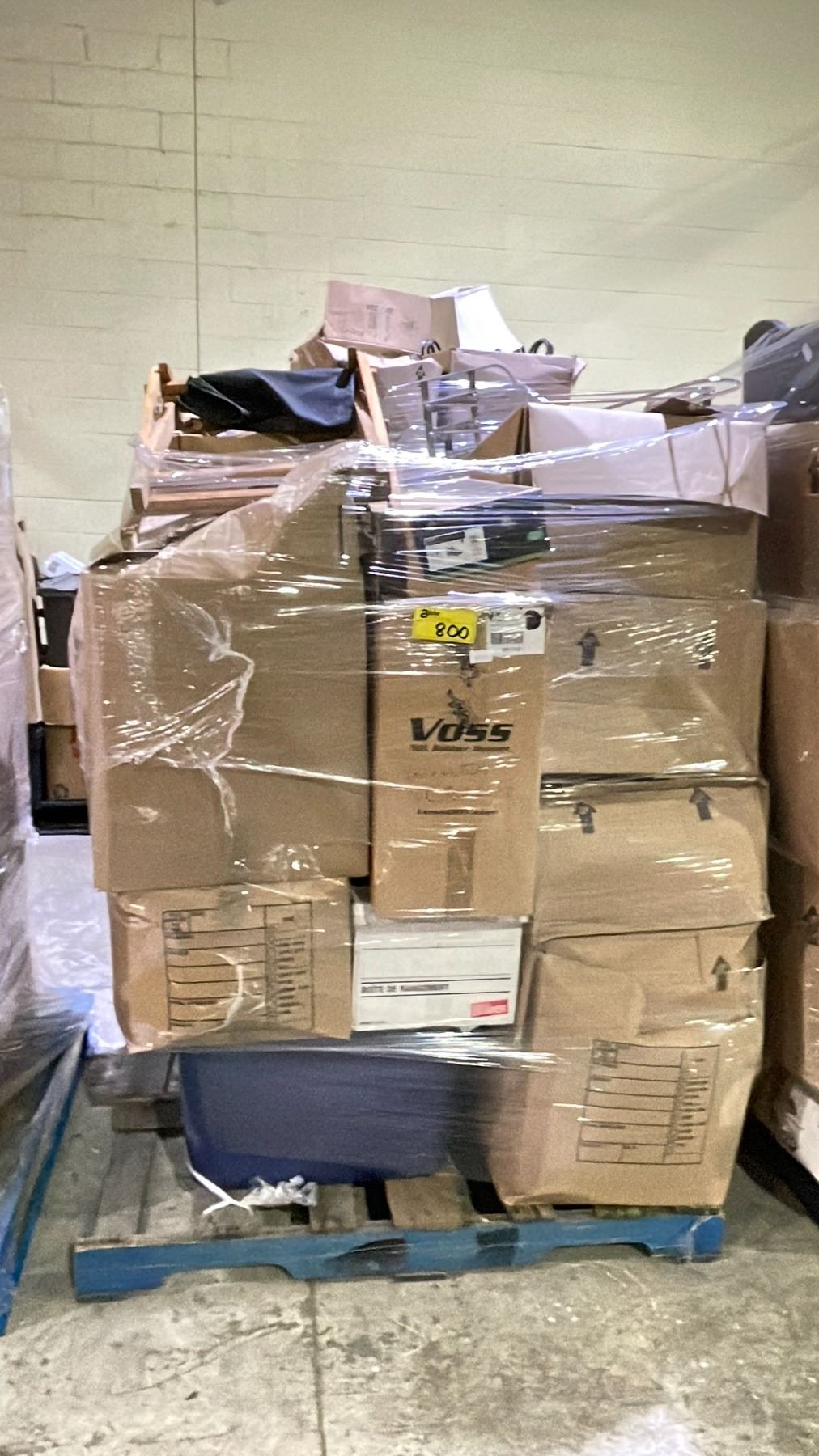PALLET OF ASSORTED ESTATE ITEMS INCLUDING; FOLDING CHAIR, HANGER RACKS, DVD CASES & MORE