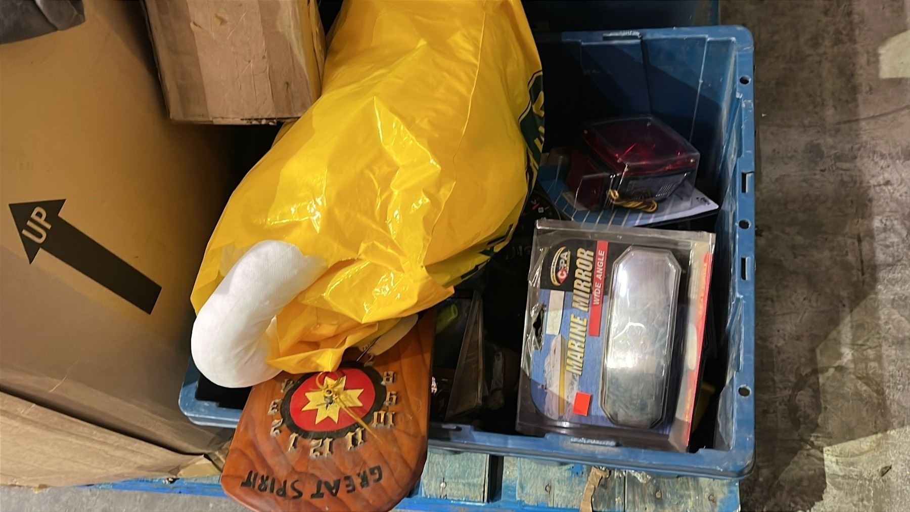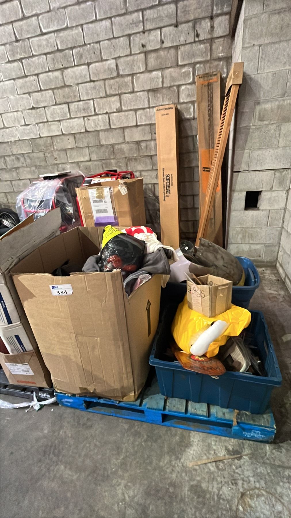 PALLET OF ASSORTED GOODS: 2-DRAWER FILING CABINET, CLOTHING & MORE *MUST TAKE ALL ON PALLET*