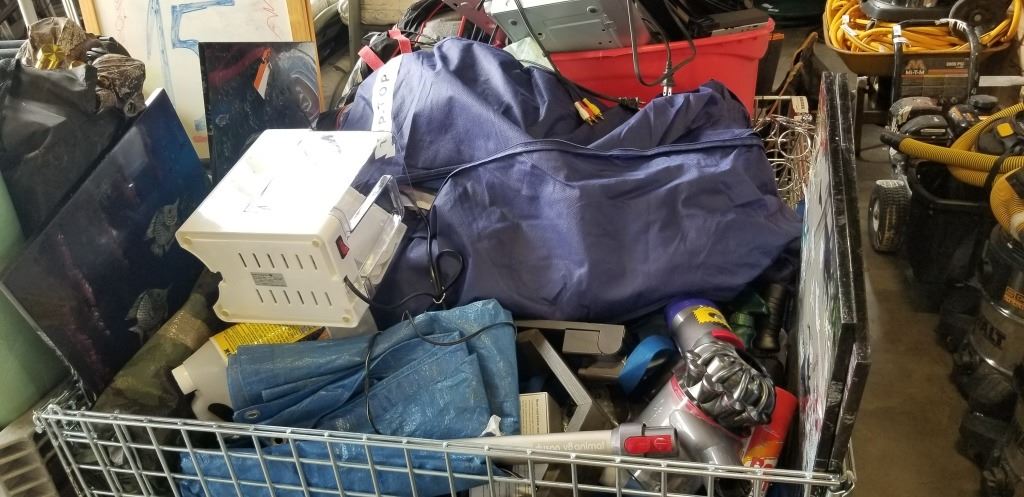PALLET OF ASSORTED GOODS, CONTENTS OF REPOSESSSED VEHICLES, BIN NOT INCLUDED