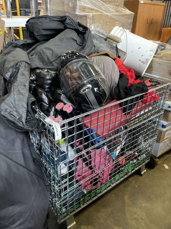 PALLET OF ASSORTED GOODS, CONTENTS OF REPOSESSSED VEHICLES, BIN NOT INCLUDED