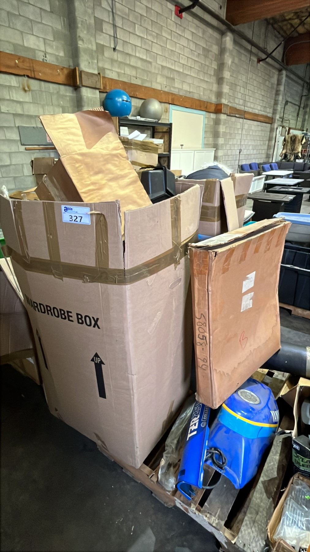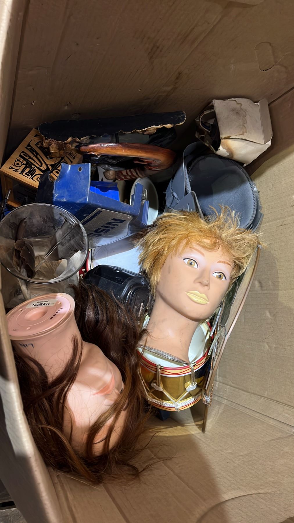 PALLET OF ASSORTED GOODS: YAHAMA MOTORCYCLE TANK, MUSIC CDS, HAIRDRESSER HEADS & MORE *MUST TAKE ALL ON PALLET*