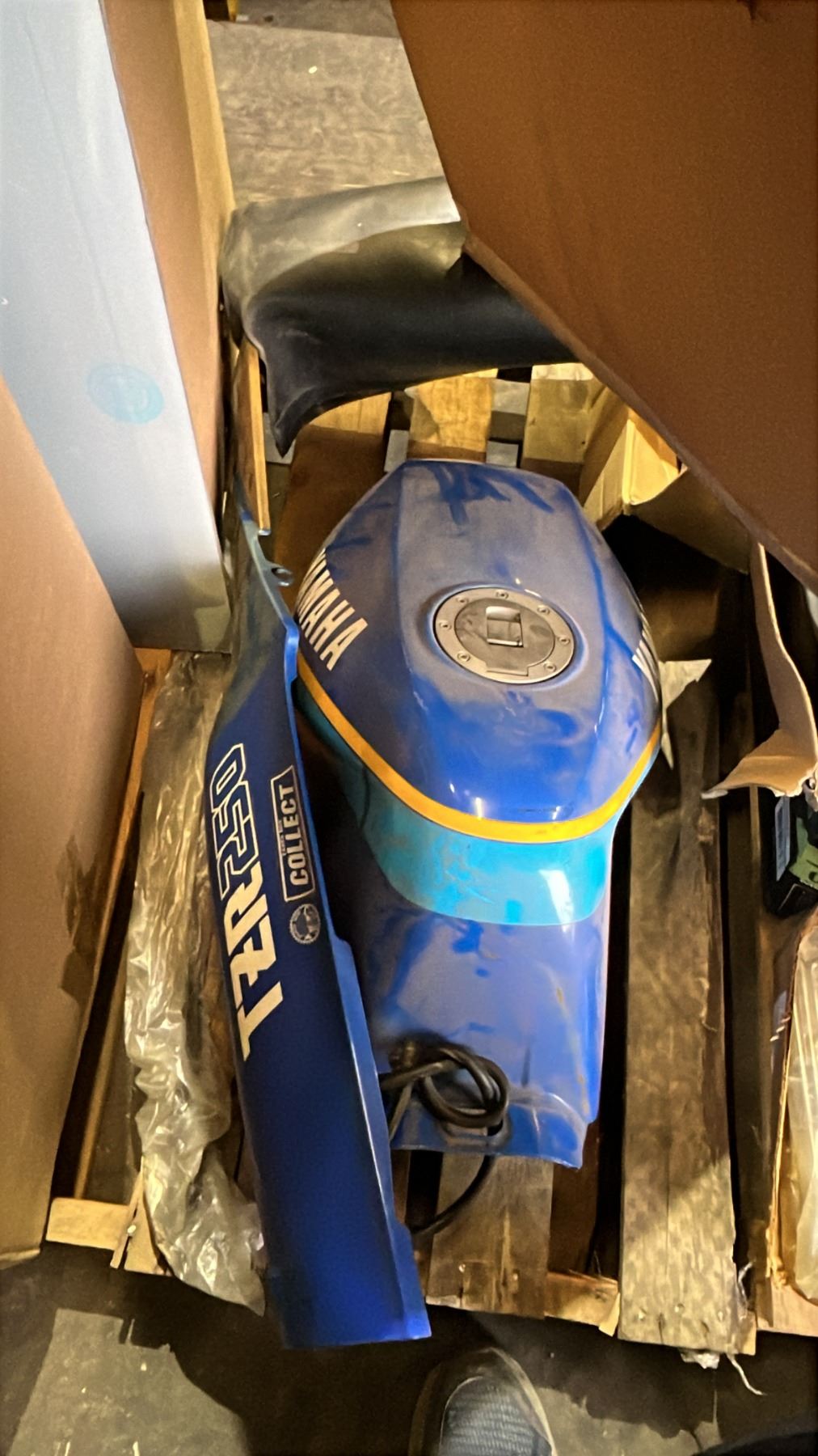 PALLET OF ASSORTED GOODS: YAHAMA MOTORCYCLE TANK, MUSIC CDS, HAIRDRESSER HEADS & MORE *MUST TAKE ALL