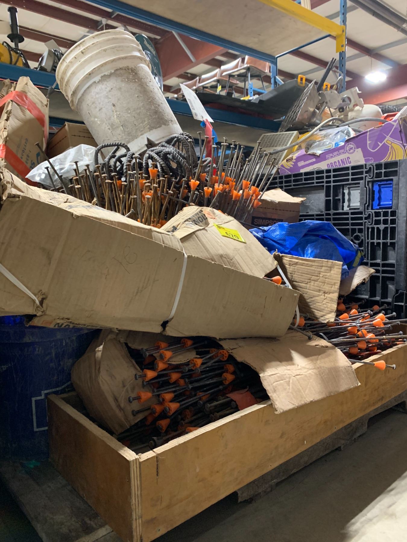 PALLET OF ASSORTED INDUSTRIAL CONCRETE FORM TIES, & ASSORTED SIMPSON STRONG TIE HANGERS