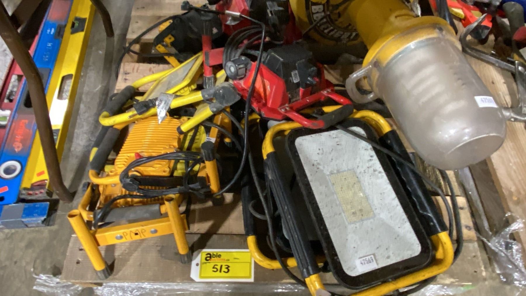 PALLET OF ASSORTED INDUSTRIAL ELECTRIC WORK LIGHTS *MUST TAKE ALL*