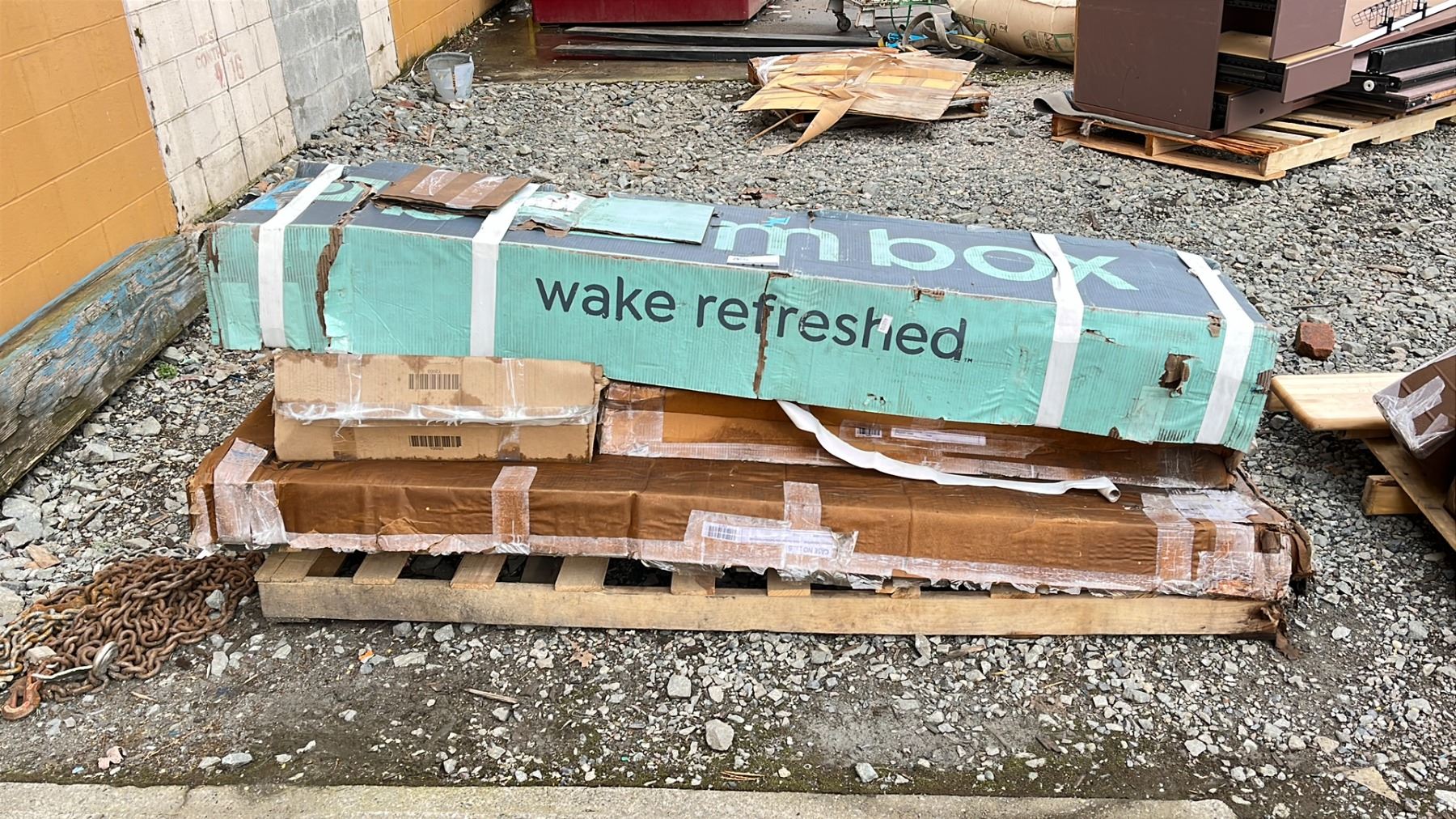 PALLET OF ASSORTED ITEMS INCLUDING; BOOMBOX BED IN A BOX & MORE (MAY BE WATER DAMAGED)