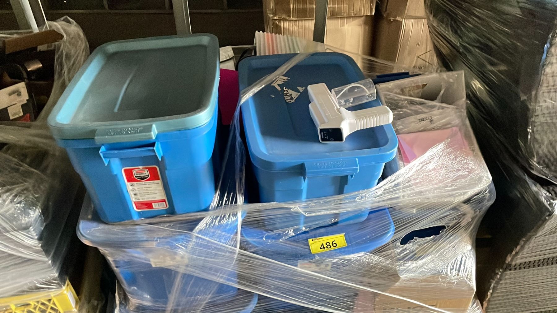 PALLET OF ASSORTED ITEMS INCLUDING; DISPOSABLE GLOVES, FACE MASKS, SANITIZER GUNS & MORE