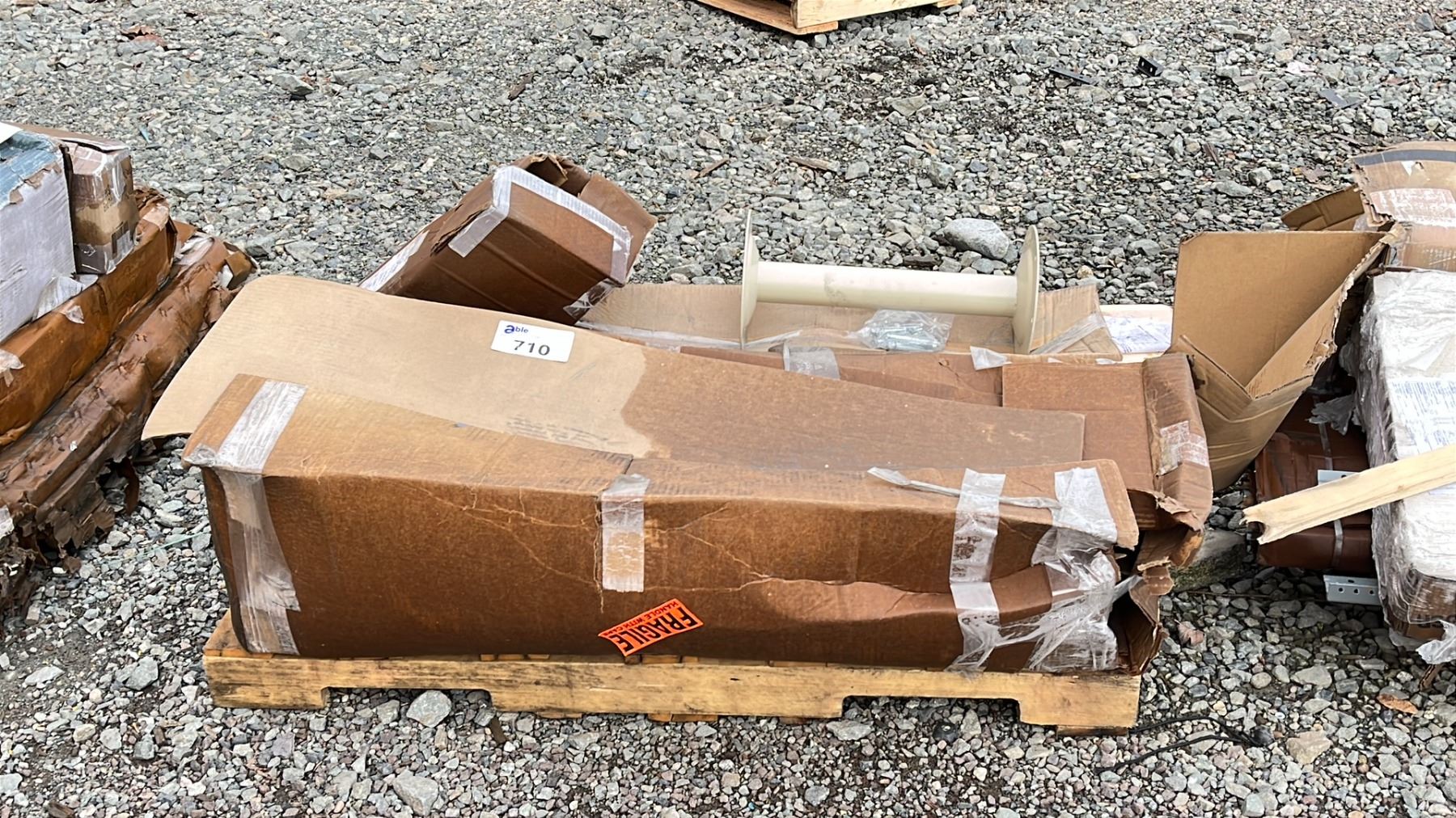 PALLET OF ASSORTED ITEMS INCLUDING; LOCKER ROOM BENCH & MORE