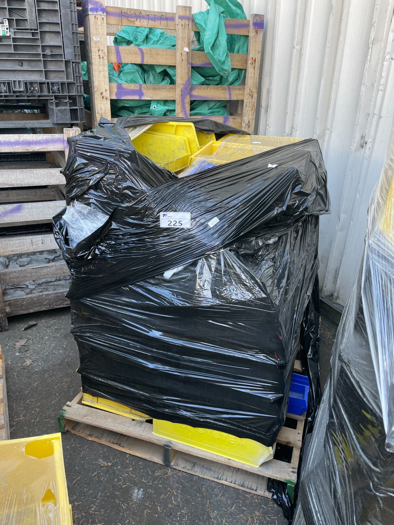 PALLET OF ASSORTED PLASTIC INDUSTRIAL STACKING PARTS BINS
