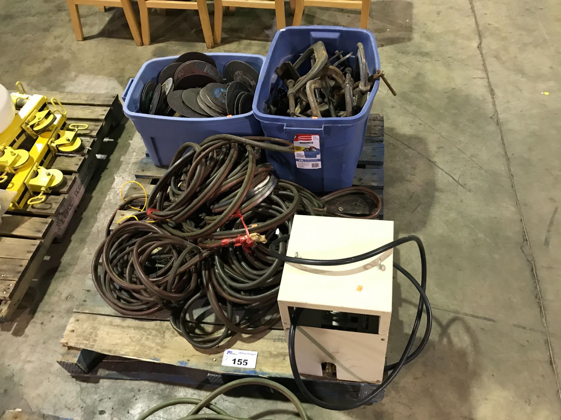 PALLET OF ASSORTED TORCH HOSES, C-CLAMPS & GRINDING DISCS