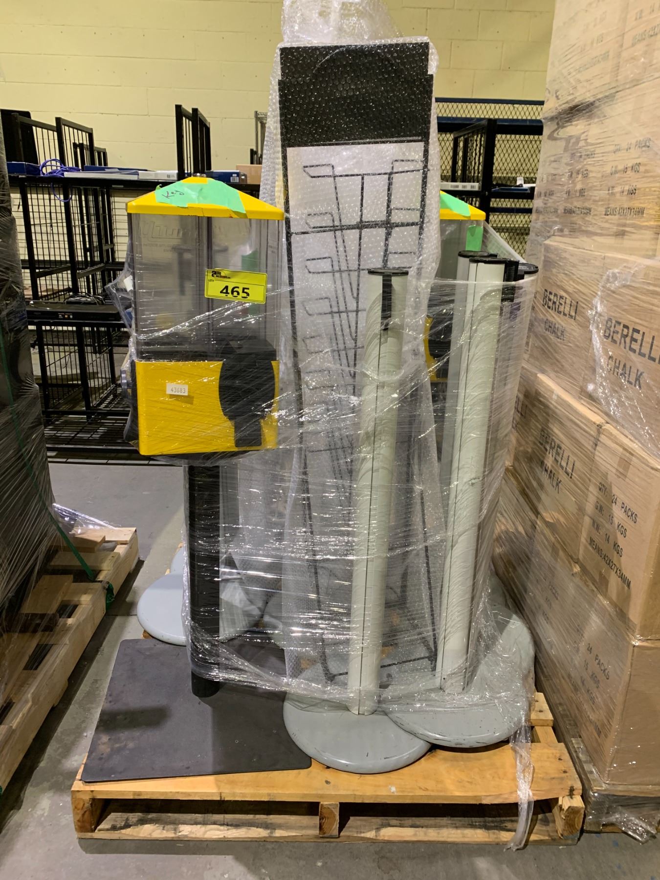 PALLET OF CANDY DISPENSERS, RACKS AND RETRACTABLE QUE POSTS