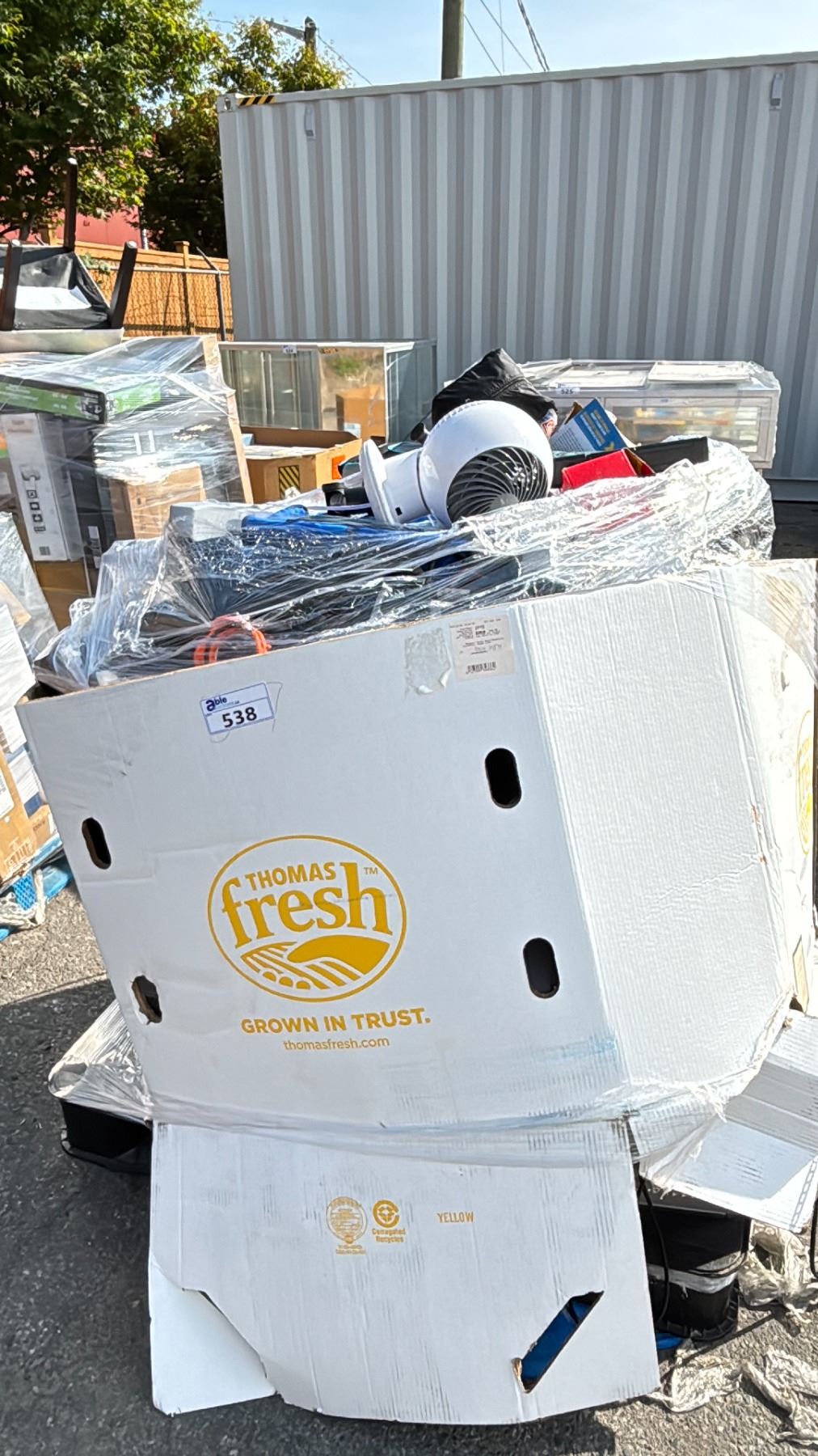 PALLET OF HOUSEHOLD GOODS INCLUDING: LAWN CHAIRS, CHILDREN'S BIKE, WOOZOO FAN & MORE - *MUST TAKE ALL ON PALLET*