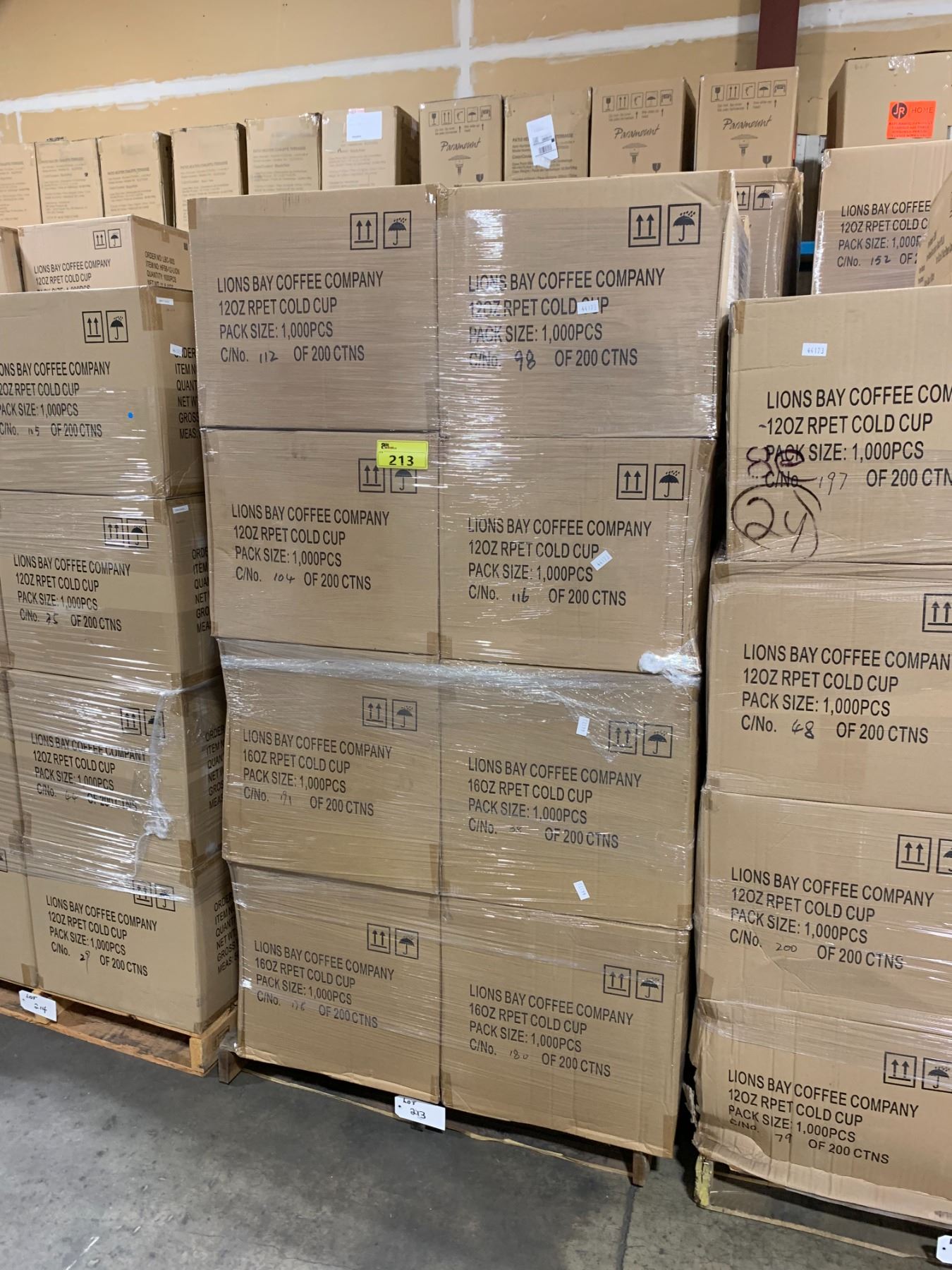 PALLET OF LIONS BAY COFFEE COMPANY 12OZ RPET COLD CUPS ( 1000 PIECES PER BOX )