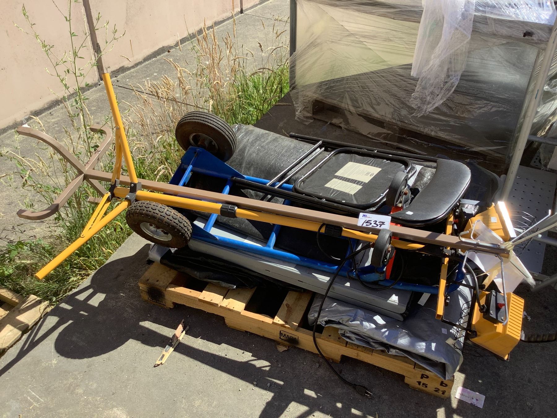PALLET OF MISC. ITEMS (WORK LIGHT, CHAIR, DOLLY, AND MORE)