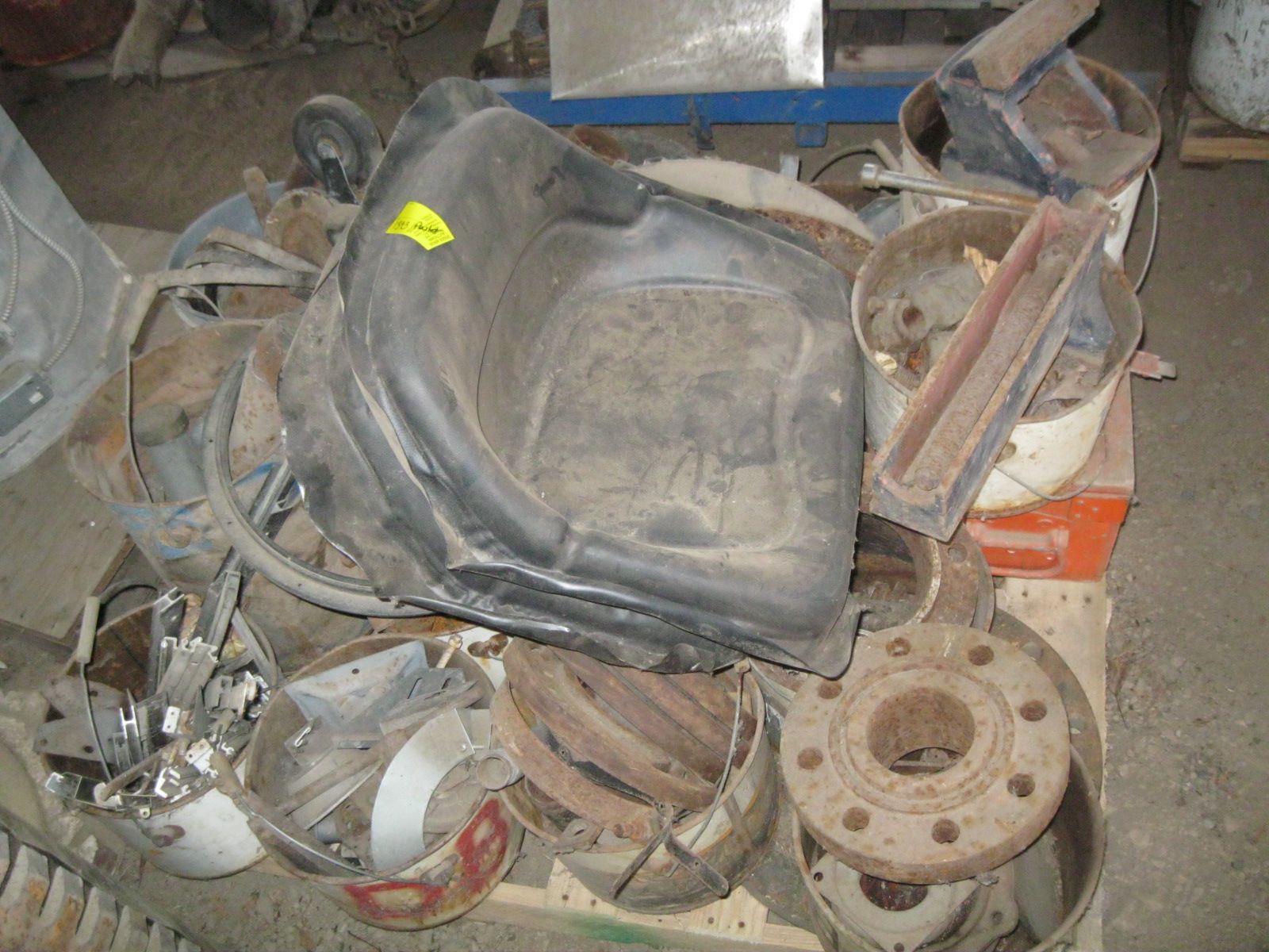 PALLET OF MISC: TRACTOR SEATS, SCRAP STEEL, ETC.