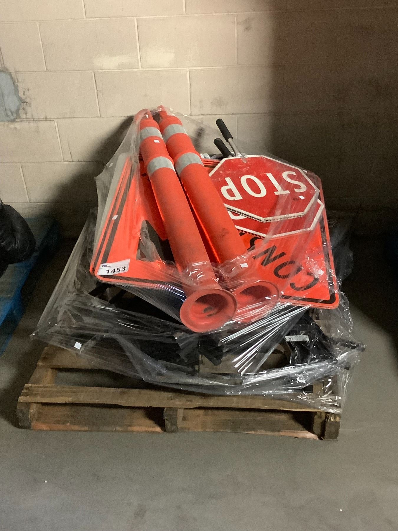 PALLET OF TRAFFIC DIVERSION SIGNS, FLAGGING SIGNS