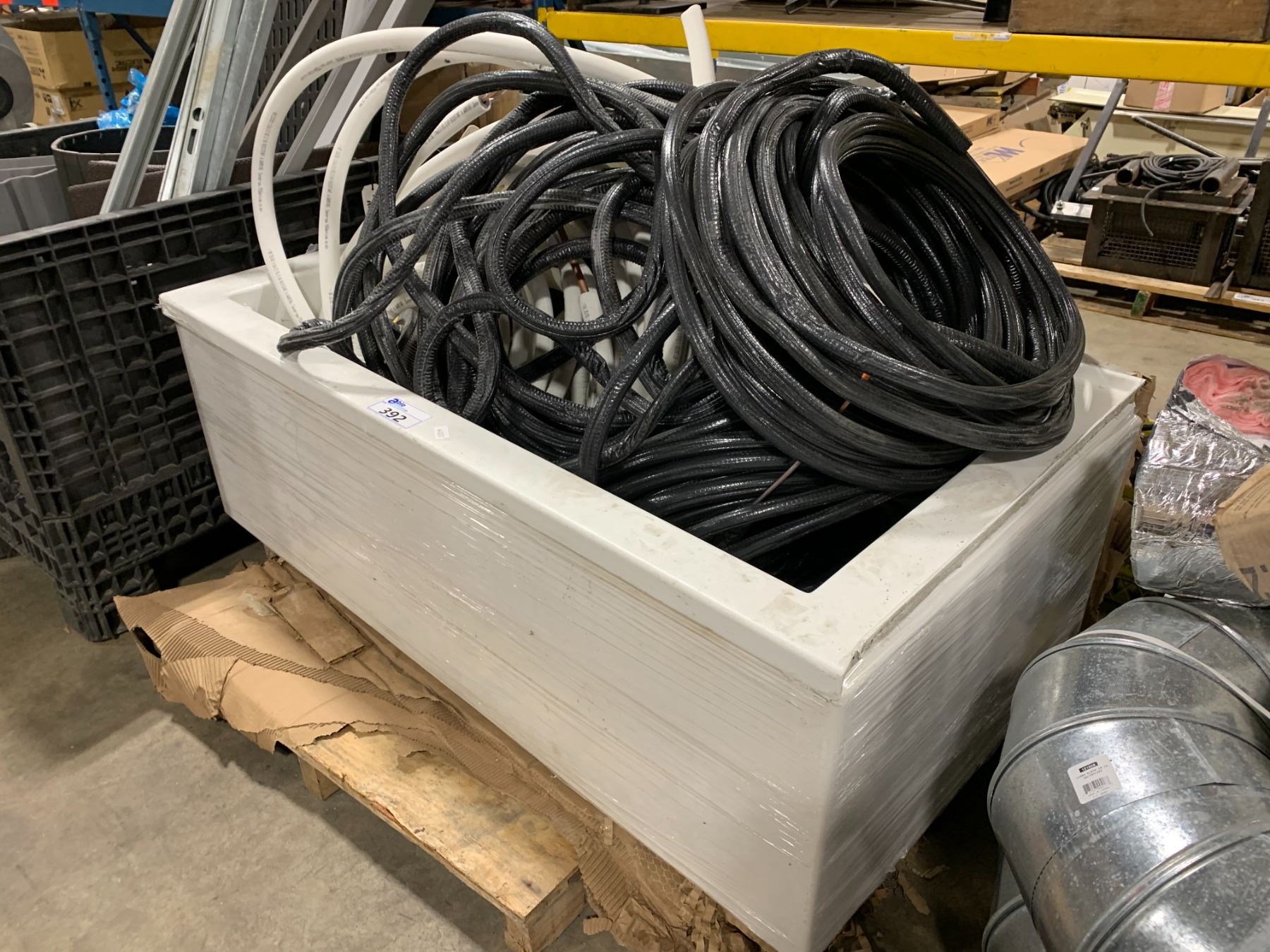 PALLET OF WHITE 60"W X 32"D X 20"H INSERT BATH TUB & INSULATED COPPER PIPE CONTENTS