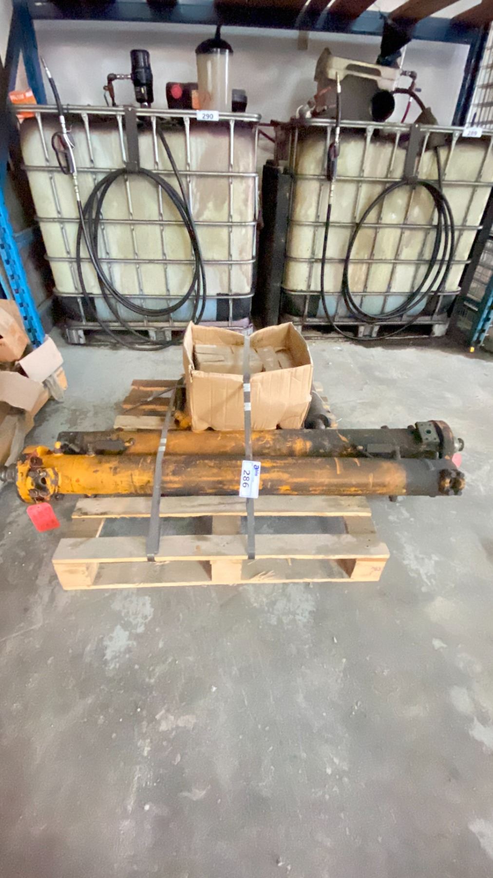 PALLET WITH 8 ASSORTED INDUSTRIAL HEAVY MACHINE HYDRAULIC CYLINDERS