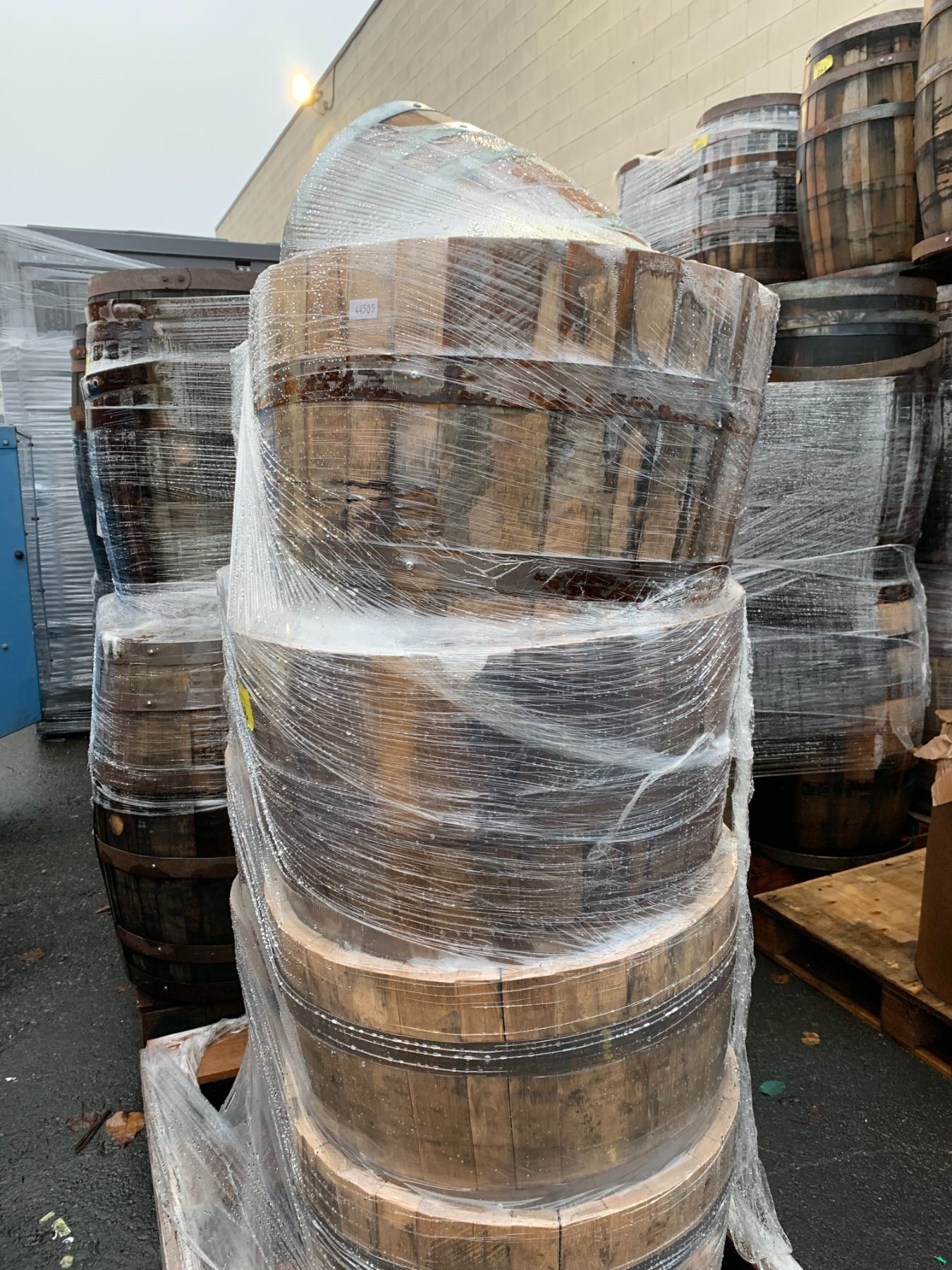 PALLETS OF 8 COMMERCIAL OAK WHISKEY BARRELS