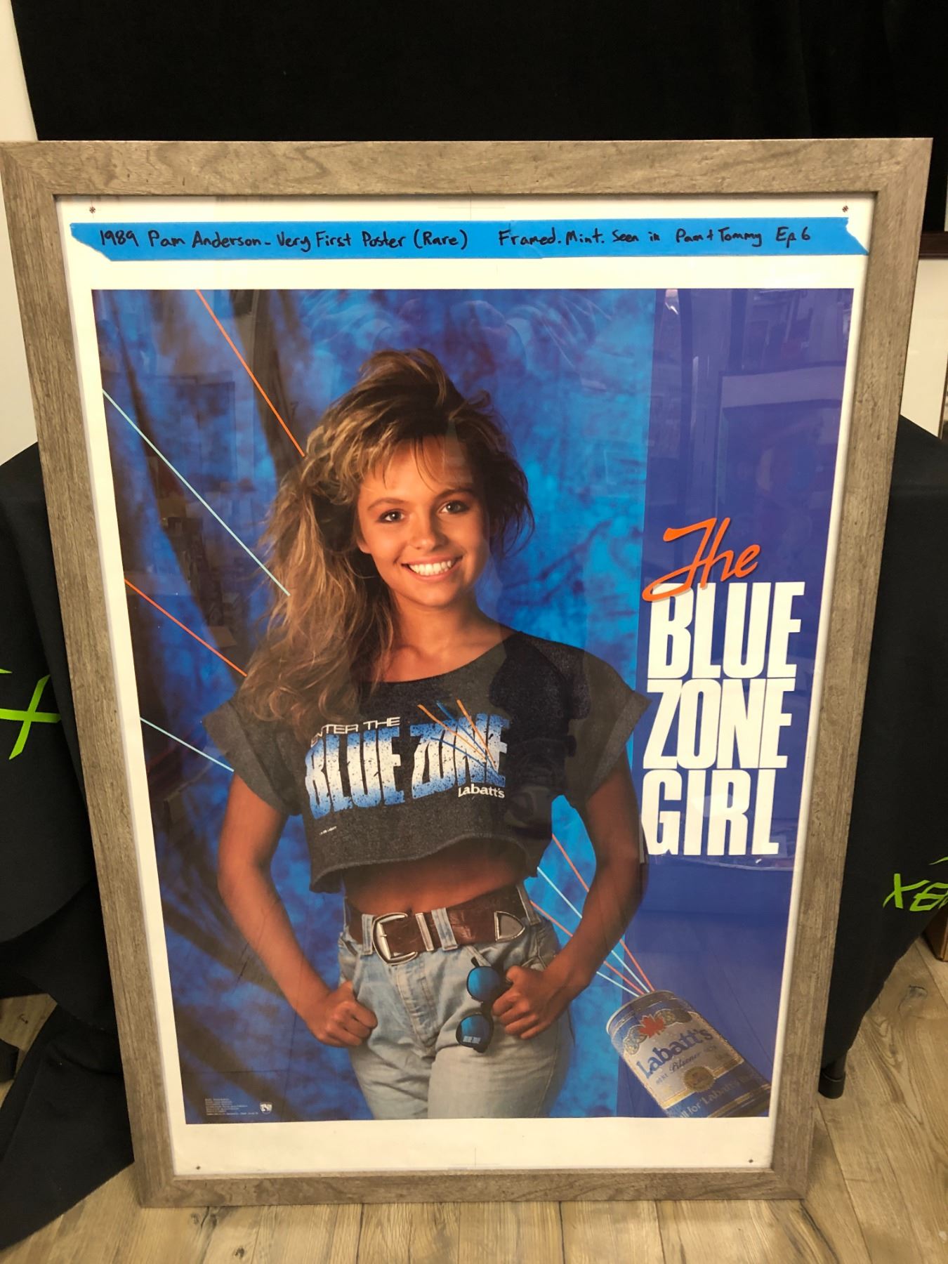 PAMELA ANDERSON FIRST ADVERTISING POSTER RARE CUSTOM FRAMED LABATT BLUE