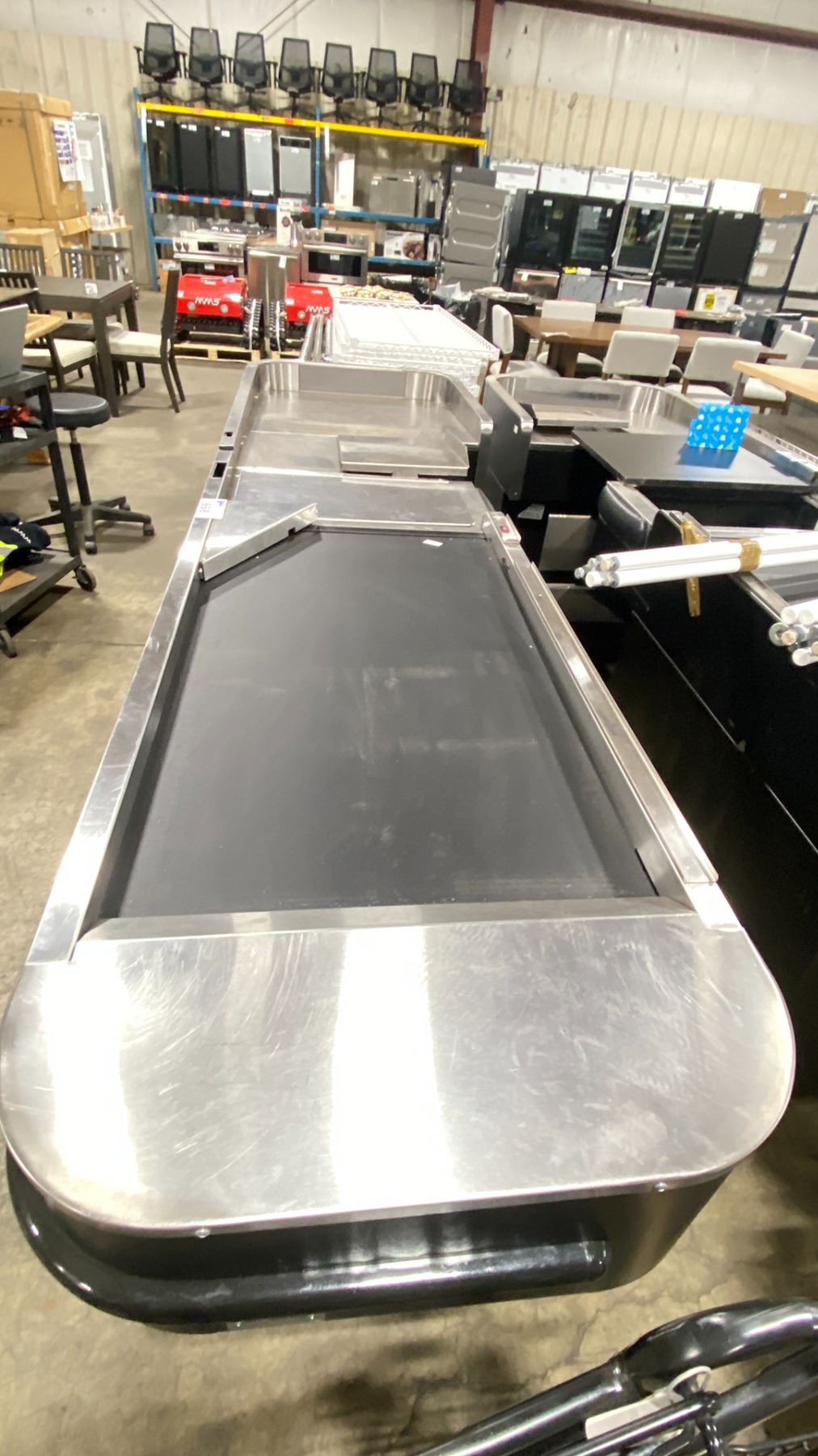 PAN-OSTON RETAIL CHECKOUT COUNTER WITH CONVEYOR APPROX 112"L X 30.5"D X 37.5"H