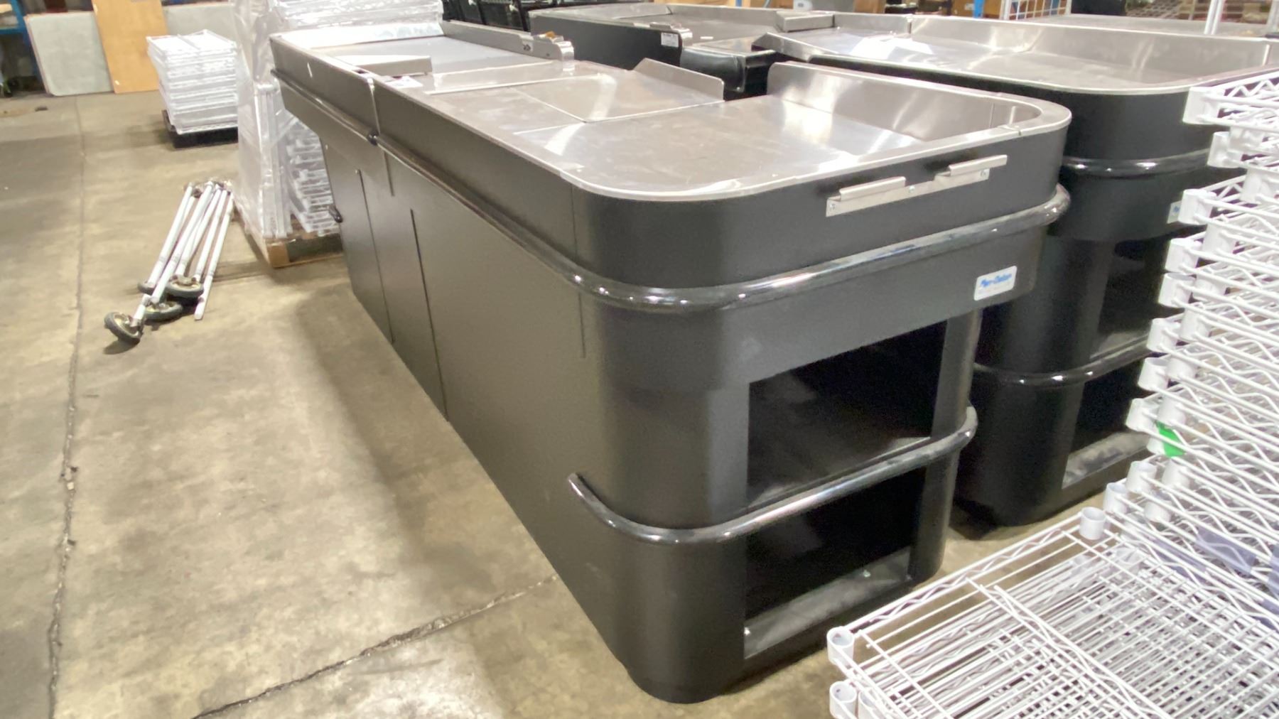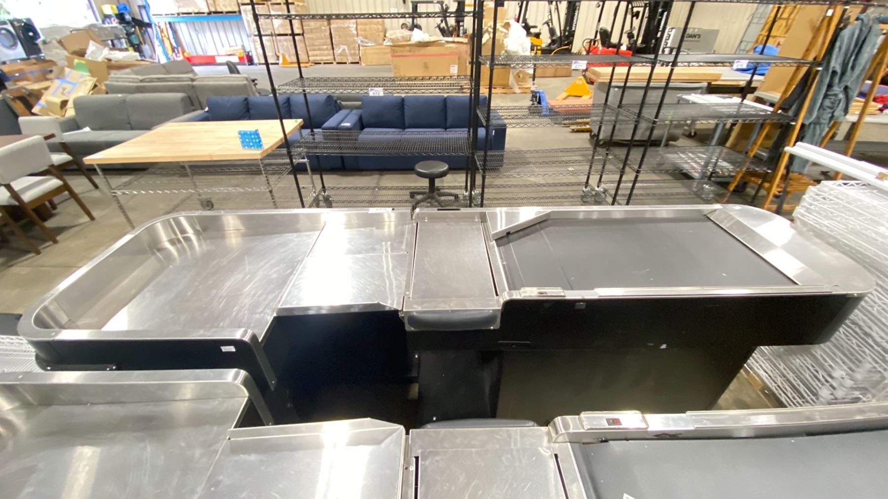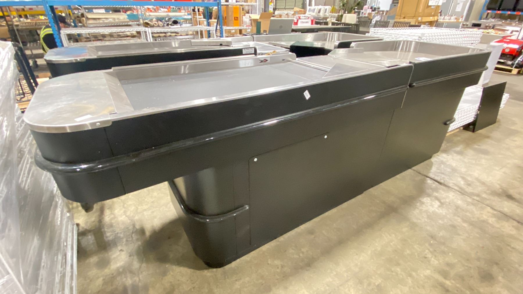 PAN-OSTON RETAIL CHECKOUT COUNTER WITH CONVEYOR APPROX 112"L X 30.5"D X 37.5"H