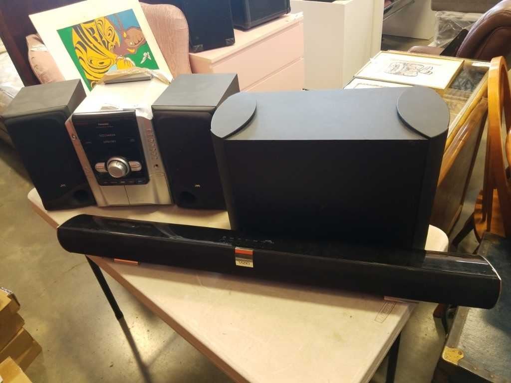 PANASONIC STEREO, BOSE ACOUSTIMASS SUB AND VIZIO SOUNDBAR
