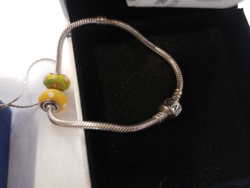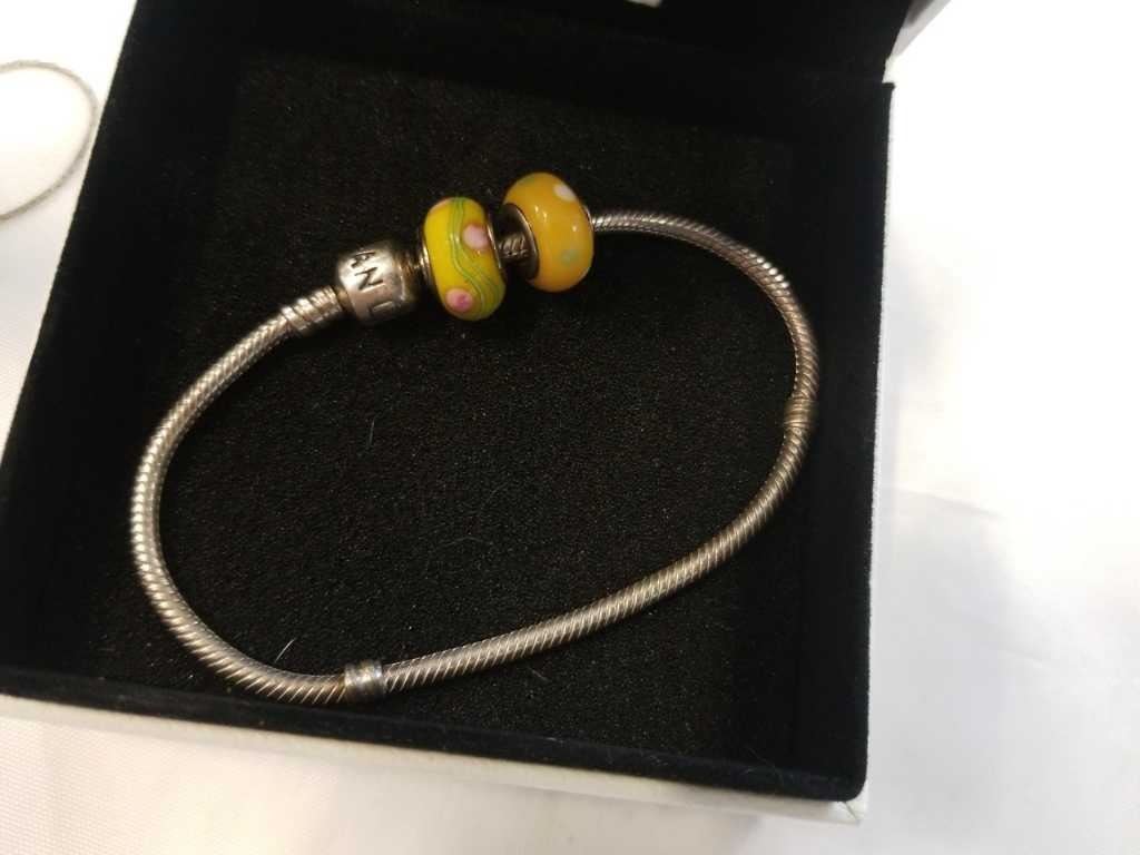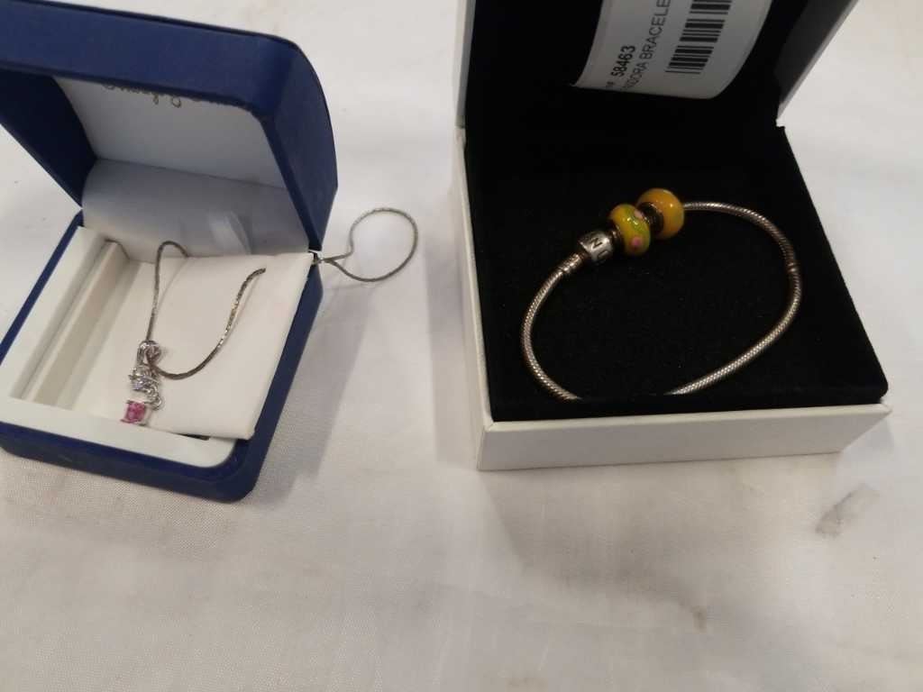 PANDORA BRACELET WITH 2 ART GLASS BEADS AND .925 NECKLACE