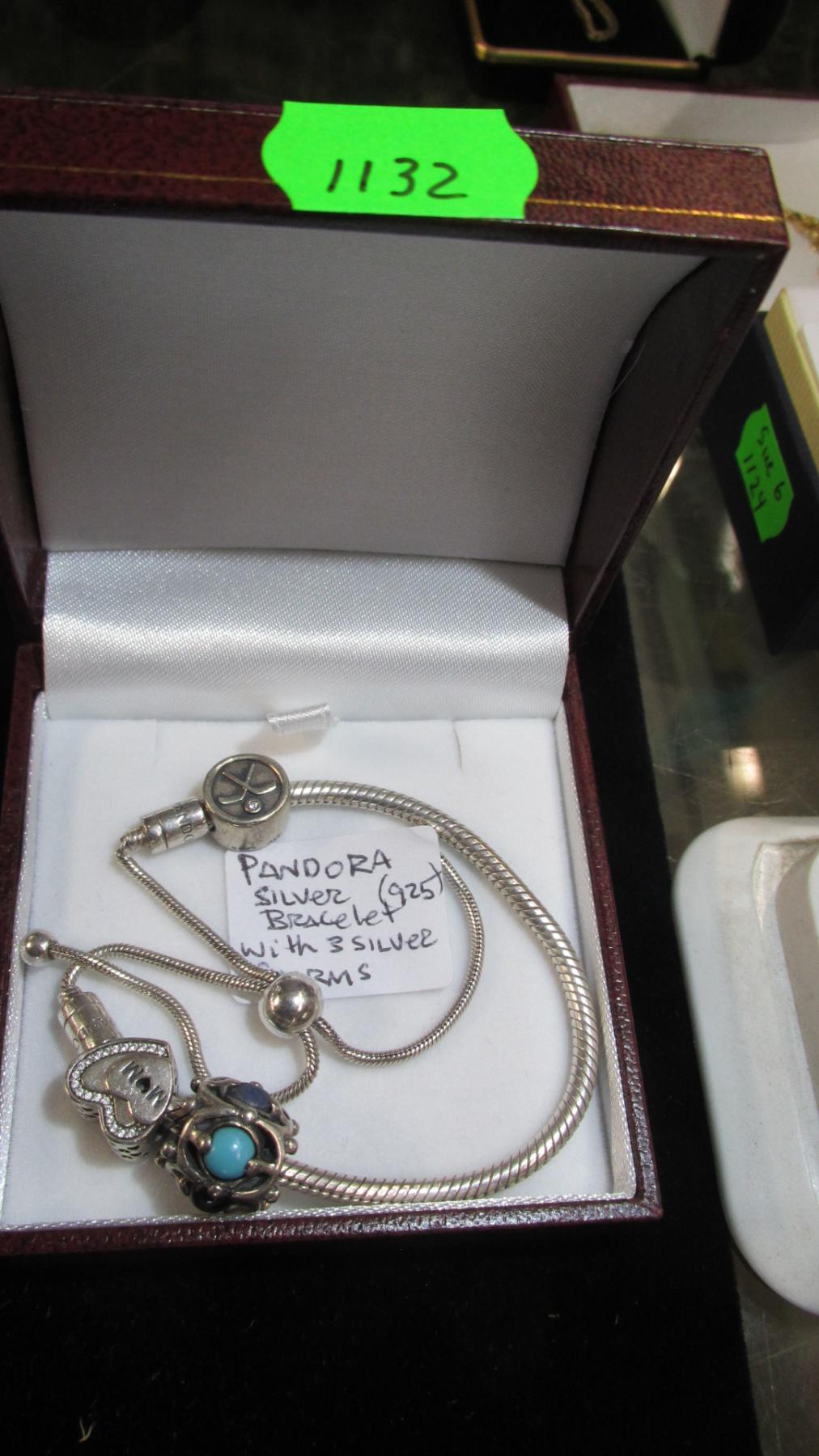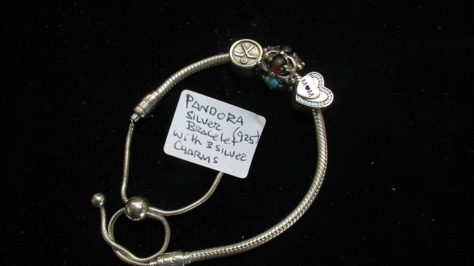 PANDORA SILVER BRACELET W/SILVER CHARMS