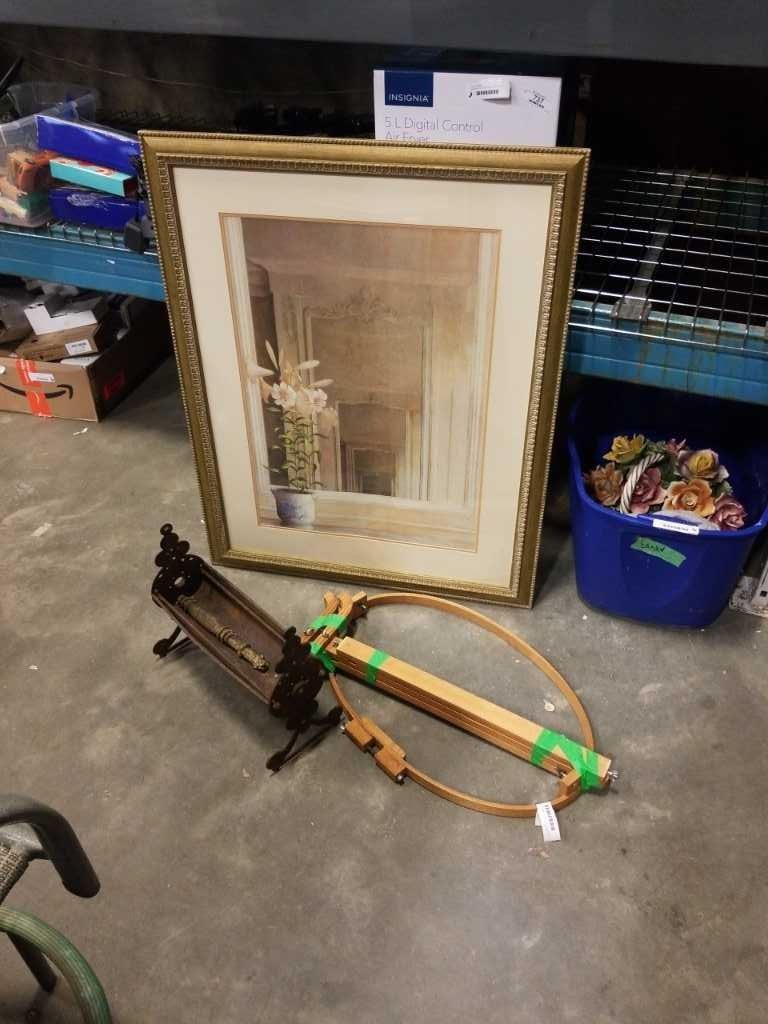 PAPER ROLL DISPENSER, FRAMED PRINT AND EMBROIDERY STICHING HOOP STAND