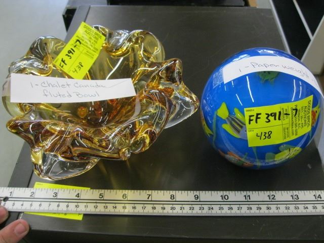 PAPERWEIGHT BY DYNASTY GALLERY, CHALET GLASS FLUTED BOWL