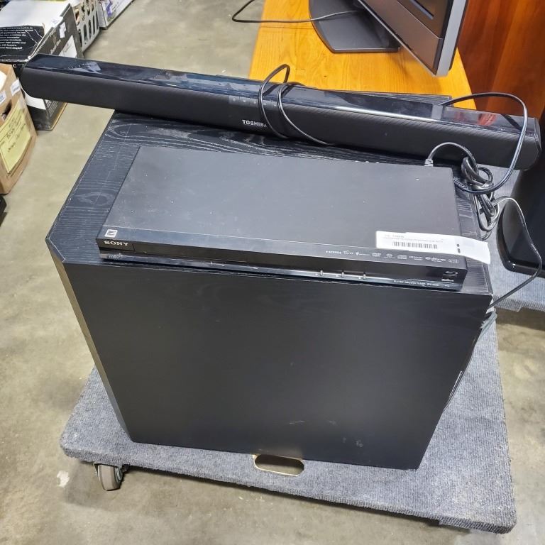 PARADIGM PS-1200A POWERED SUB WITH SONY BLU RAY PLAYER AND TOSHIBA TY-SBX130B SOUNDBAR