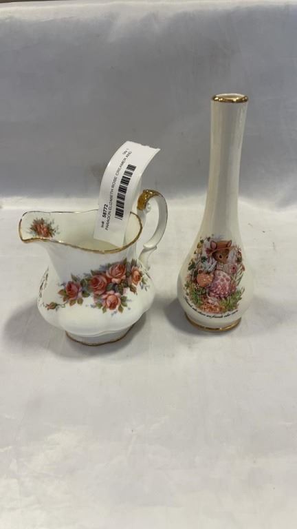 PARAGON ELIZABETH ROSE CREAMER AND CROWN DEVON VASE