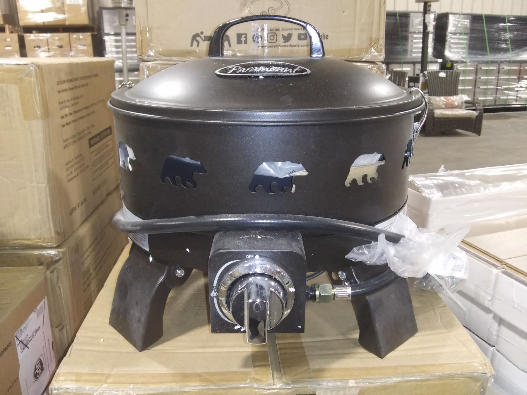 PARAMOUNT BBQ-211-GBK BLACK BEAR PATTERN TABLE TOP PROPANE OUTDOOR FIRE PIT