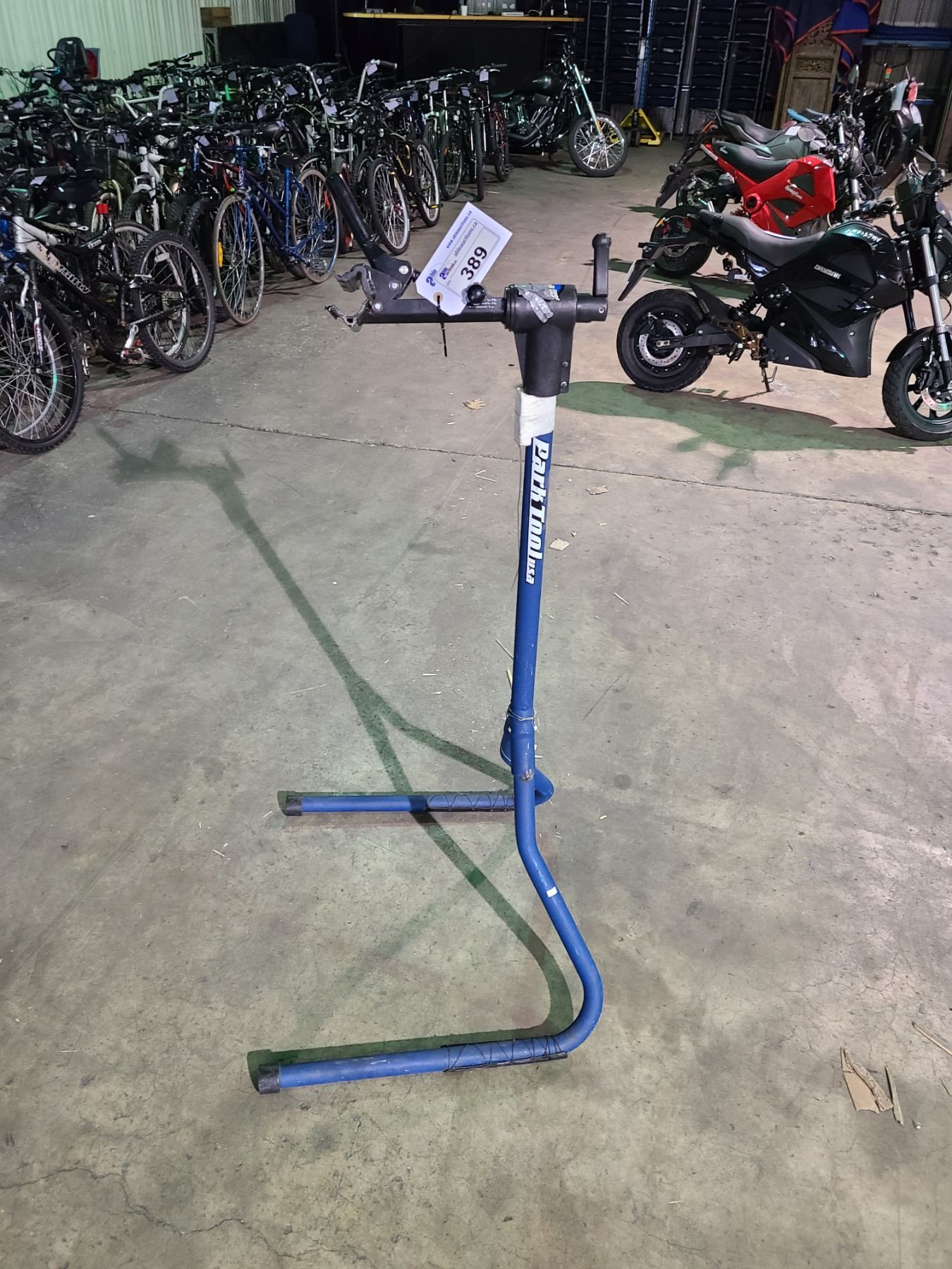 PARK TOOL USA BIKE REPAIR STAND & PALLET OF GT / SUPERCYCLE BIKE FRAMES, PARTS & STROLLER PARTS