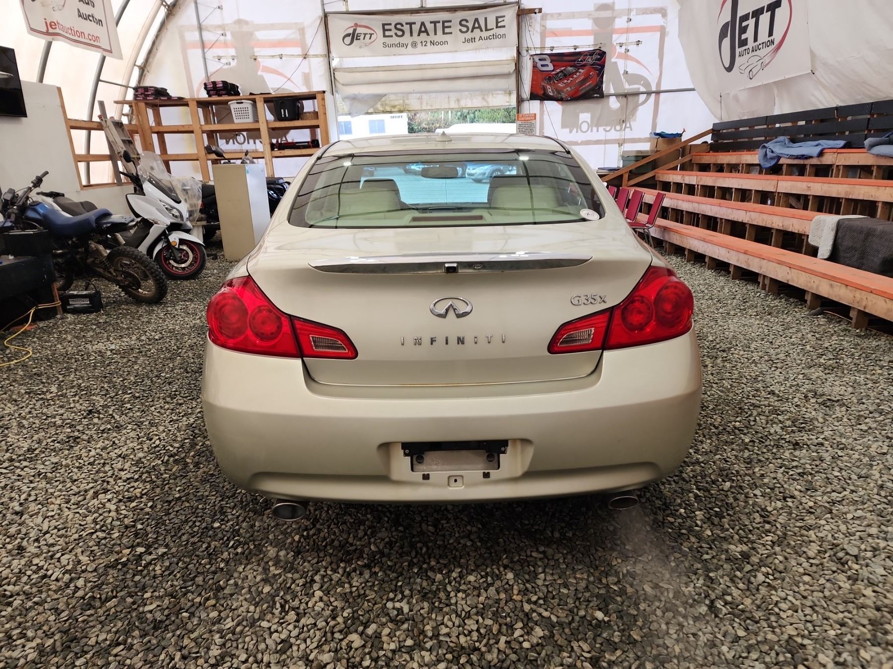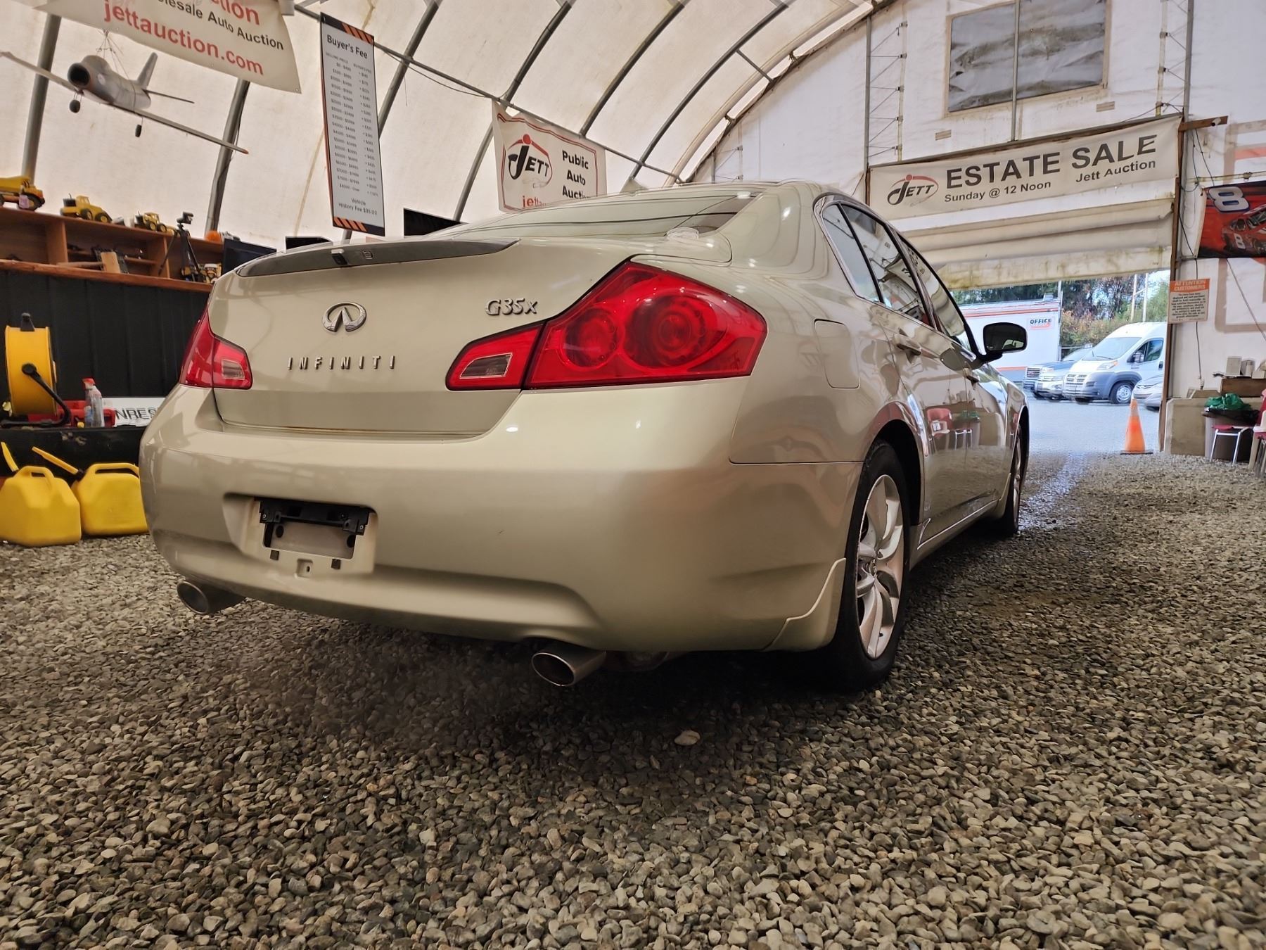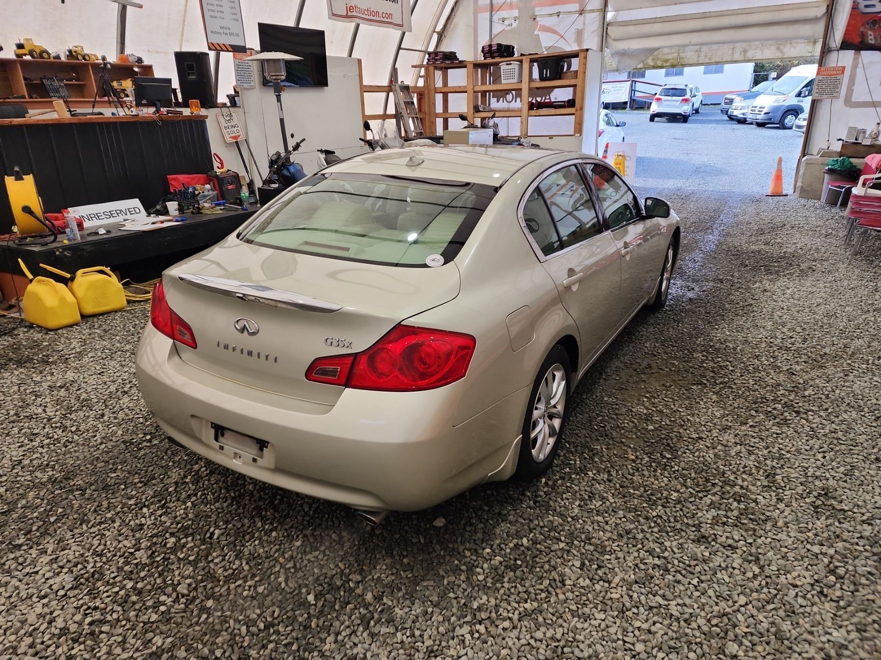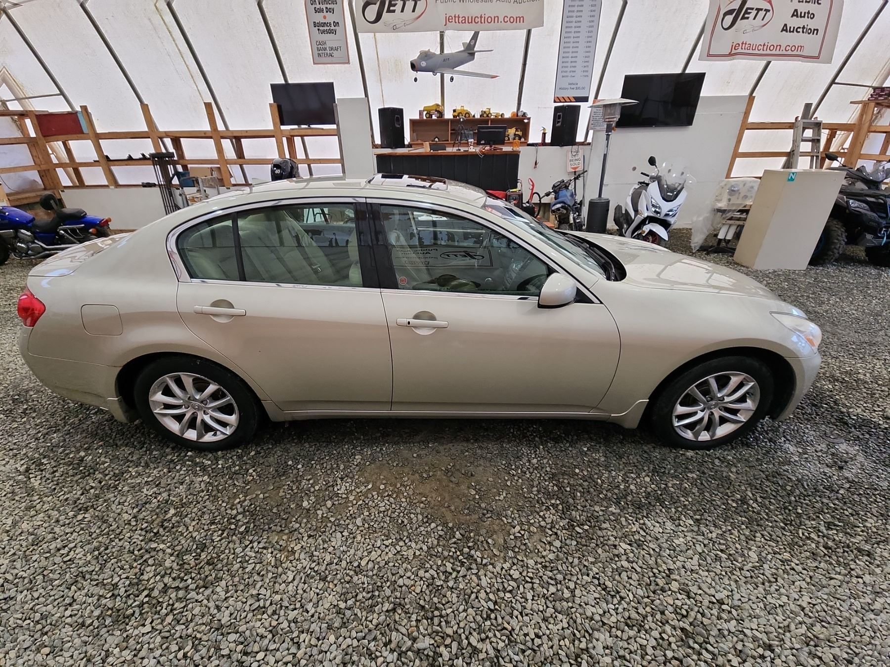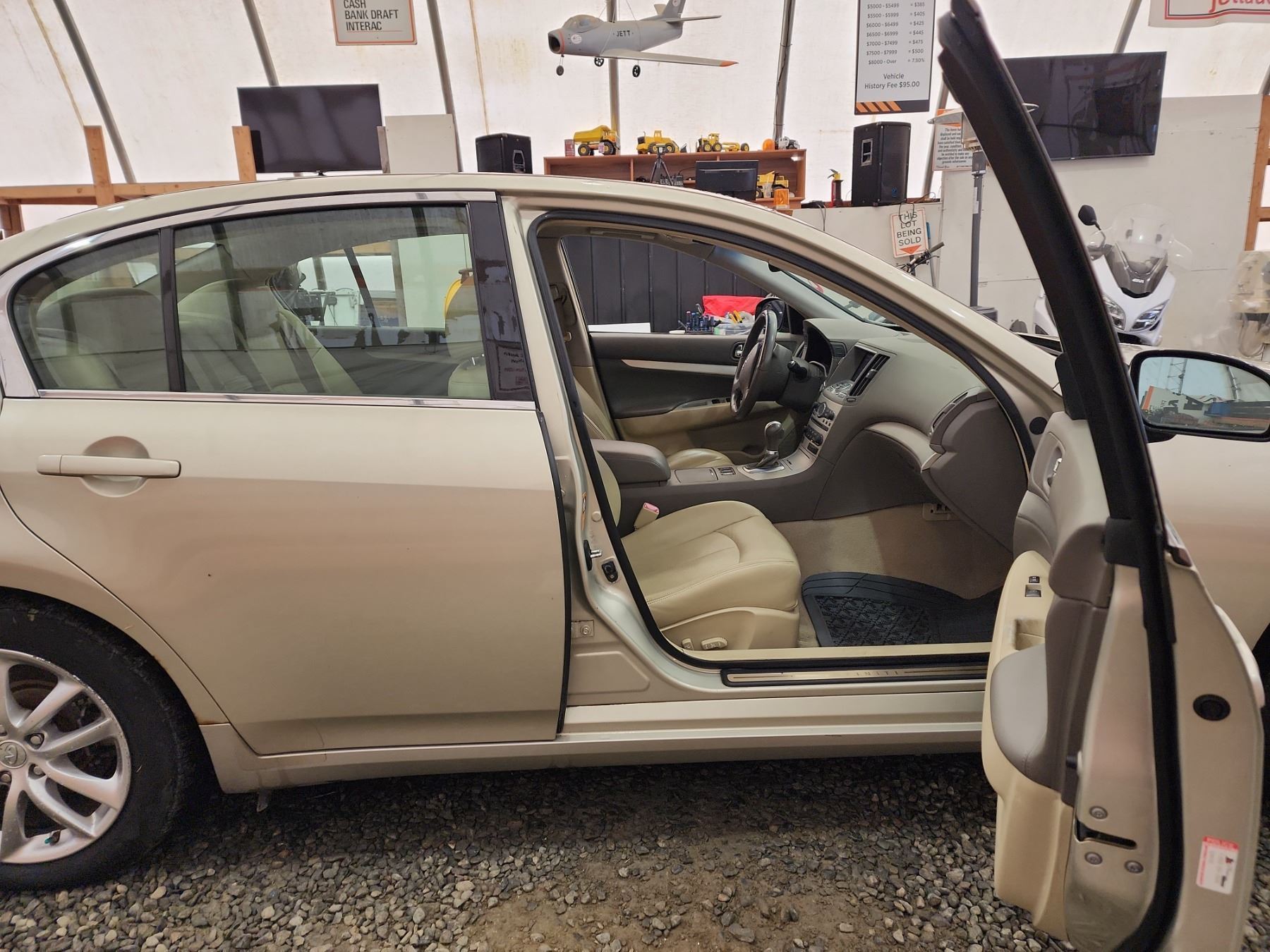 2007 INFINITY G35X, BIEGE, 295940 KMS, 3.5L, 6 CYLINDER, GASOLINE, AUTOMATIC WITH TIPTRONIC, TRANSMISSION, FOUR WHEEL DRIVE, 5 PASSENGER. AIR CONDITIONING, POWER WINDOWS, POWER LOCKS, KEY-LESS ENTRY, TILT STEERING, CRUISE CONTROL, ALLOY WHEELS, ANTI THEFT, DUAL AIR BAGS, POWER SUNROOF, CD PLAYER, BLUETOOTH, LEATHER SEATS, POWER SEATS, HEATED SEATS, MEMORY SEATS, NAVIGATION, BACK UP CAMERA, TRACTION CONTROL, DUAL ZONE CLIMATE, FOG LIGHTS, POWER MIRRORS, PUSH-BUTTON START , SPLIT-FOLDING REAR SEATS. DECLARATIONS: EX-OUT OF PROVINCE 2 ACCIDENTS 0 GLASS CLAIM, TOTALLING $4456. SERVICE HISTORY SHOWS31 RECORDS. AUCTION NOTES: 2ND SET OF RIMS AND TIRES. 1 OWNER SINCE NEW DEALER SERVICED FULL RECORDS. LOCATION: PARKSVILLE. THIS VEHICLE IS AT OUR PARKSVILLE SITE, 861 ALLSBROOK RD, PARKSVILLE, BC. ALL VIEWING, PAYMENT, AND PICKUP HAPPEN AT THIS LOCATION ONLY. STOCK #: P806389 JNKBV61F47M806389