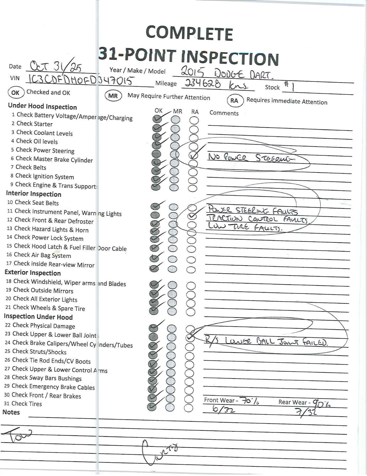 2015 DODGE DART, BLACK, 234627 KMS, 1.4L, 4 CYLINDER, GASOLINE, 6 SPEED MANUAL, TRANSMISSION, FRONT WHEEL DRIVE, 5 PASSENGER. AIR CONDITIONING, POWER WINDOWS, POWER LOCKS, KEY-LESS ENTRY, TILT STEERING, CRUISE CONTROL, ANTI THEFT, DUAL AIR BAGS, BLUETOOTH, INFOTAINMENT CENTER, BACK UP CAMERA, TRACTION CONTROL, POWER MIRRORS, CHIP OR CRACK IN WINDSHIELD, SPLIT-FOLDING REAR SEATS. DECLARATIONS: EX-OUT OF PROVINCE 1 ACCIDENTS 0 GLASS CLAIM, TOTALLING $0. SERVICE HISTORY SHOWS54 RECORDS. AUCTION NOTES: NEW CLUTCH,THROW OUT BEARING AND PRESSURE PLATE. NEW REAR BRAKES, POWER STEERING NEEDS ATTENTION LOCATION: PARKSVILLE. THIS VEHICLE IS AT OUR PARKSVILLE SITE, 861 ALLSBROOK RD, PARKSVILLE, BC. ALL VIEWING, PAYMENT, AND PICKUP HAPPEN AT THIS LOCATION ONLY. STOCK #: P347015 1C3CDFDH0FD347015 NOT SUITABLE FOR TRANSPORTATION, MUST TOW.