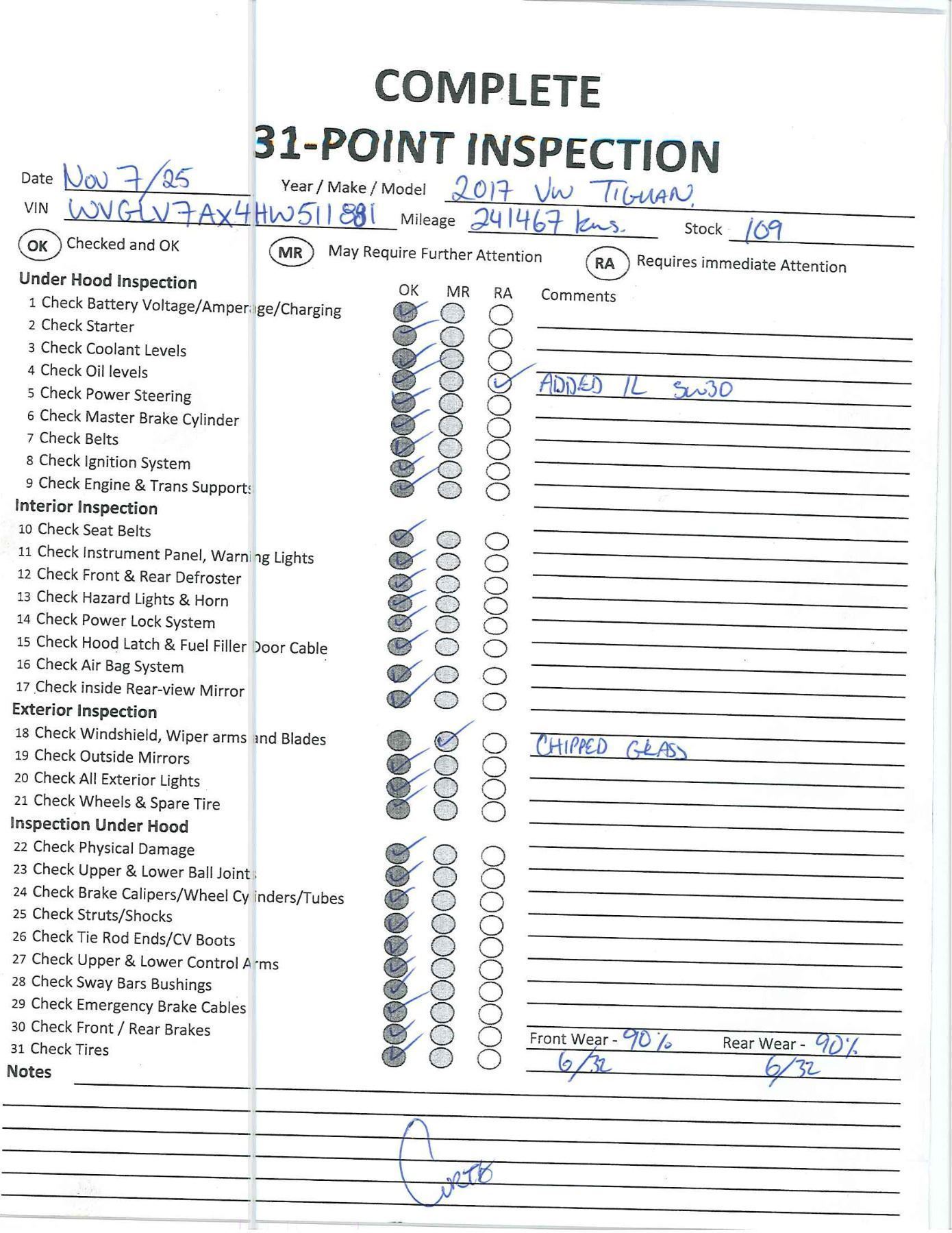 2017 VW TIGUAN, BLACK, 241467 KMS, 2.0L, 4 CYLINDER, GASOLINE, AUTOMATIC WITH TIPTRONIC, TRANSMISSION, ALL WHEEL DRIVE, 5 PASSENGER. AIR CONDITIONING, POWER WINDOWS, POWER LOCKS, KEY-LESS ENTRY, TILT STEERING, CRUISE CONTROL, ALLOY WHEELS, ANTI THEFT, DUAL AIR BAGS, POWER SUNROOF, CD PLAYER, BLUETOOTH, LEATHER SEATS, POWER SEATS, HEATED SEATS, HEATED MIRRORS, INFOTAINMENT CENTER, NAVIGATION, BACK UP CAMERA, PARKING SENSORS, TRACTION CONTROL, DUAL ZONE CLIMATE, STEERING WHEEL CONTROLS, PADDLE SHIFTERS, FOG LIGHTS, ROOF RACK, POWER MIRRORS, PUSH-BUTTON START , SPLIT-FOLDING REAR SEATS. DECLARATIONS: NO DESIGNATIONS 1 ACCIDENTS 0 GLASS CLAIM, TOTALLING $2784. SERVICE HISTORY SHOWS42 RECORDS. AUCTION NOTES: LOCATION: PARKSVILLE. THIS VEHICLE IS AT OUR PARKSVILLE SITE, 861 ALLSBROOK RD, PARKSVILLE, BC. ALL VIEWING, PAYMENT, AND PICKUP HAPPEN AT THIS LOCATION ONLY. STOCK #: D511881 WVGLV7AX4HW511881