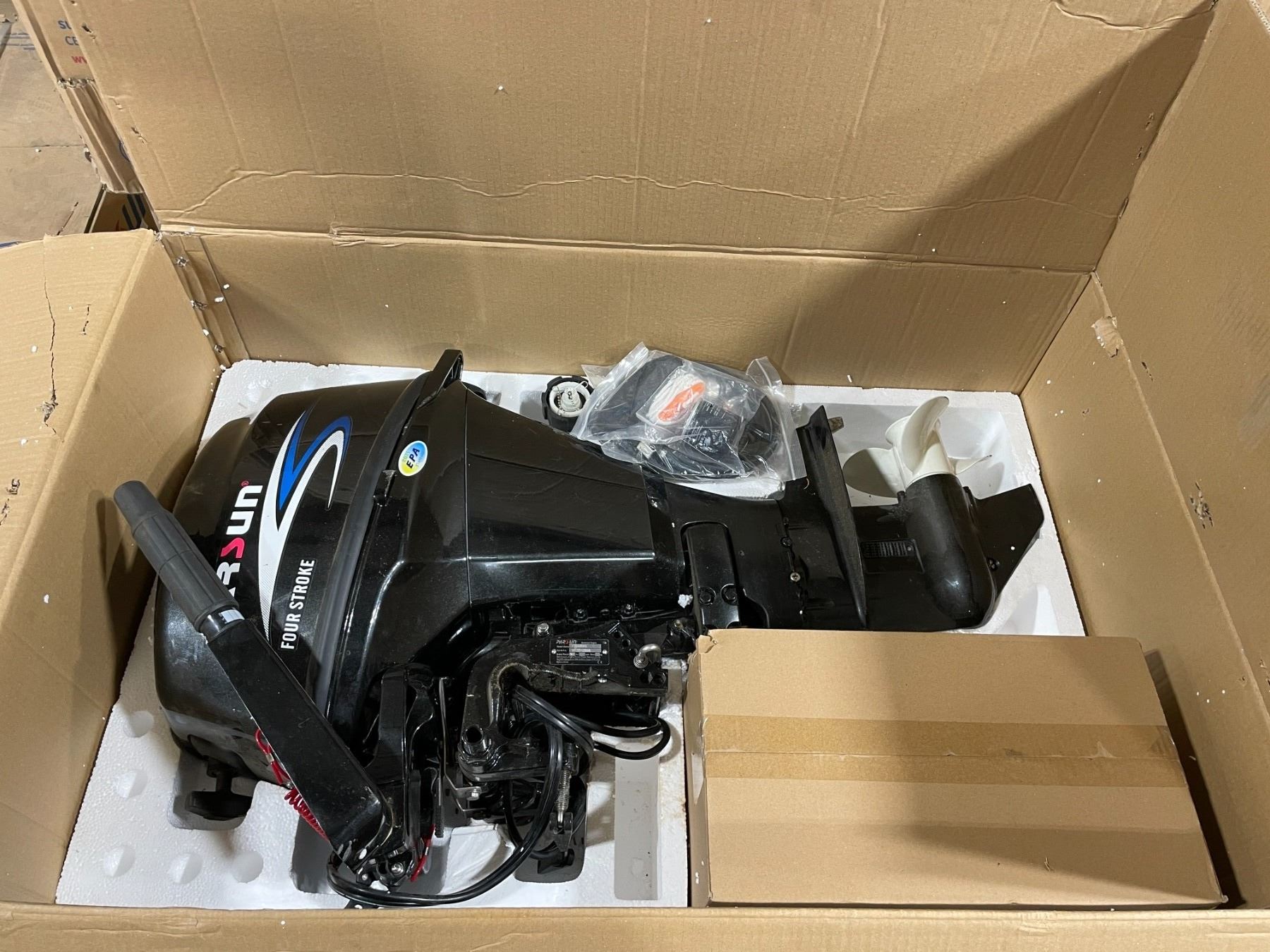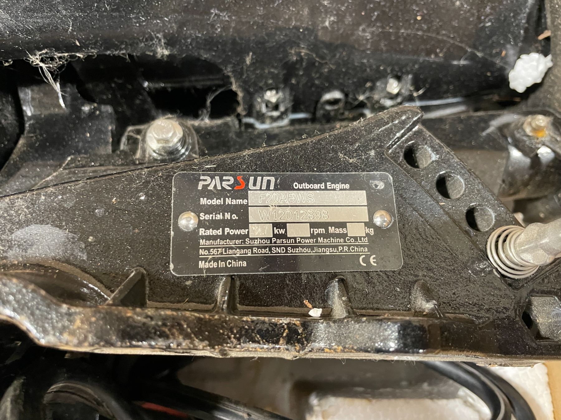 PARSUN F20ABW-S 20HP 4 STROKE SHORT SHAFT 14.7 KW NOMINAL POWER OUTBOARD MOTOR * EPA STANDARD, HAS OIL IN, READY TO USE, IN BOX, DEMO MODEL USED LESS THAN 15HRS *