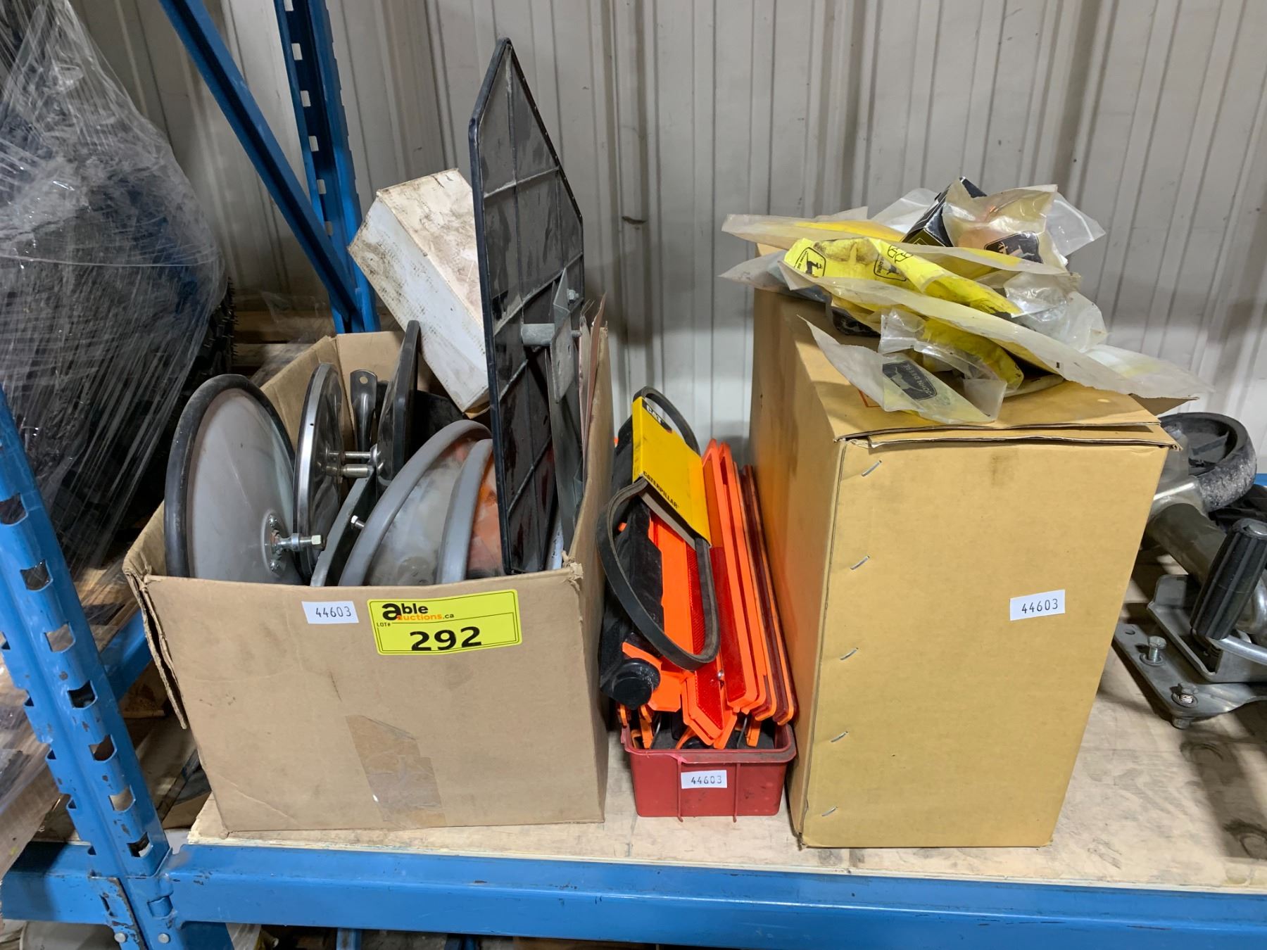 PASSENGER SIDE MANUAL TELESCOPING MIRROR & ASSORTED HARDWARE & LOT OF CONVEX SAFETY MIRRORS/SAFETY REFLECTORS & ASSORTED HARDWARE