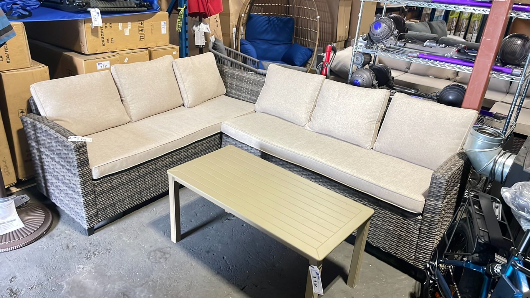 PATIO BLISS 2 TONE GREY 2 PCS L-SHAPE OUTDOOR PATIO SECTIONAL SET WITH BEIGE CUSHIONS SIZE 72" X 94" X 28"