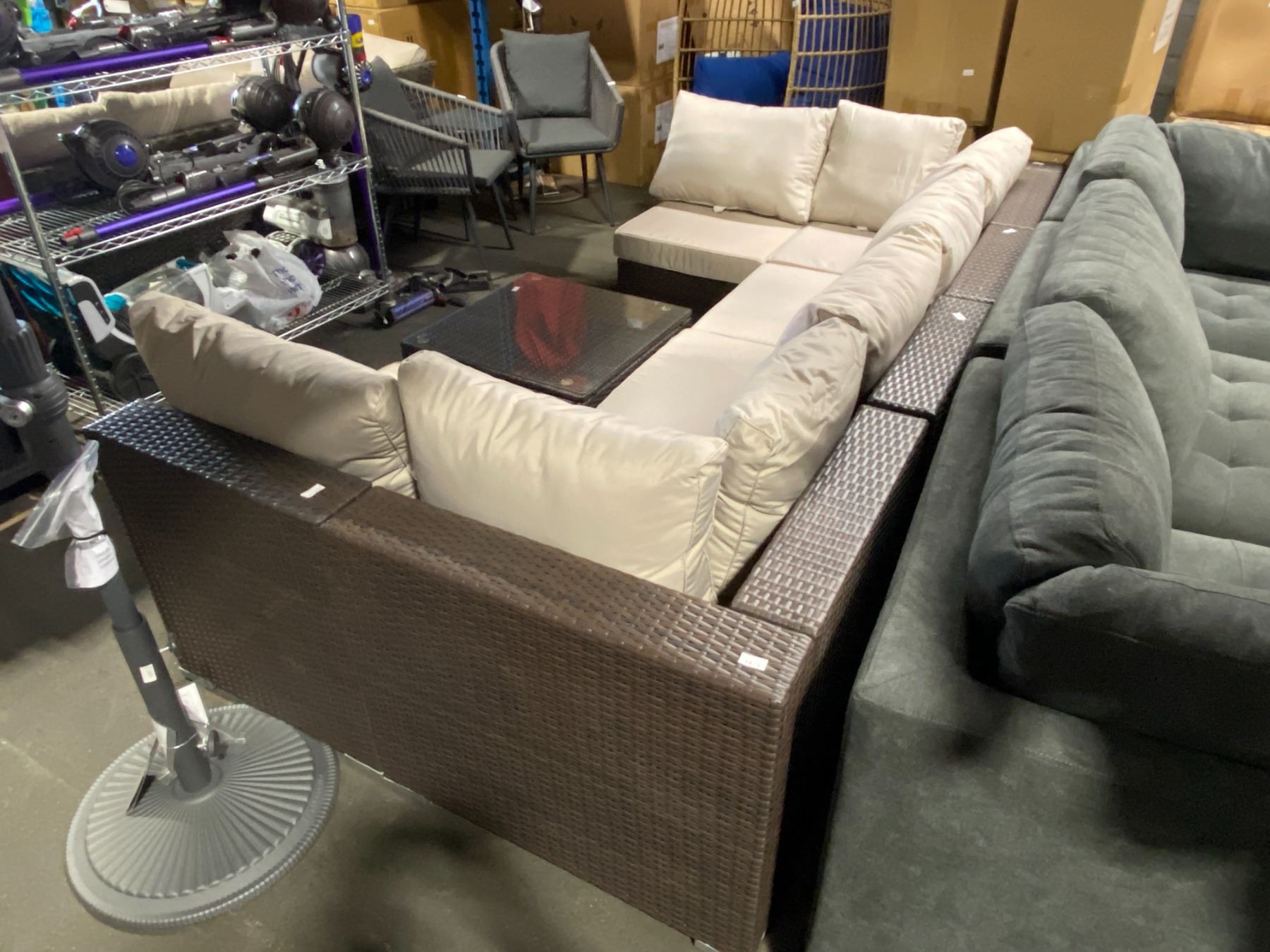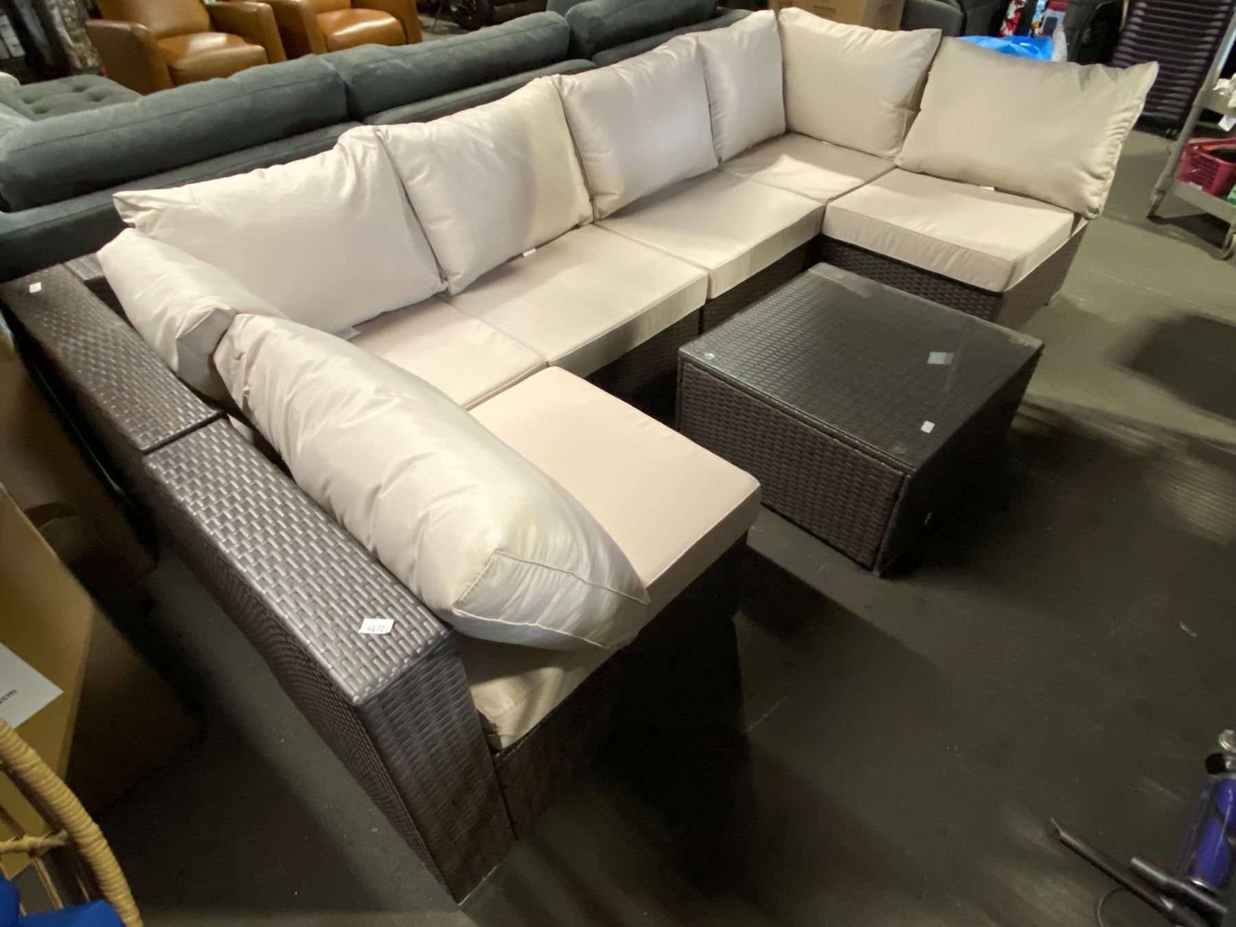 PATIO BLISS 7PCS BROWN RATTAN OUTDOOR SOFA SET WITH CREAM CUSHIONS IN BOX *4 BOXES*
