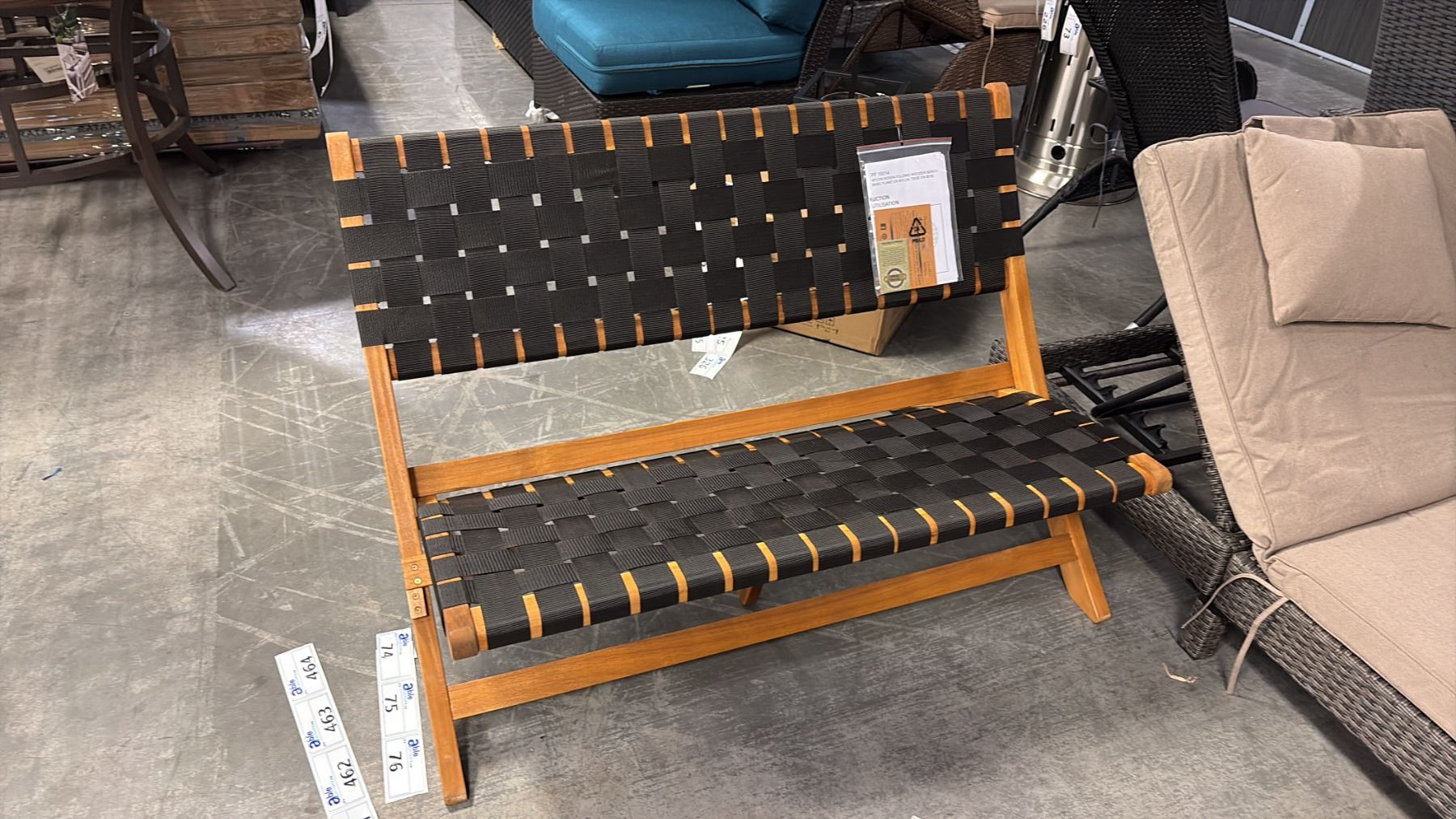 PATIO FLARE BLACK WOVEN FOLDING WOODEN BENCH
