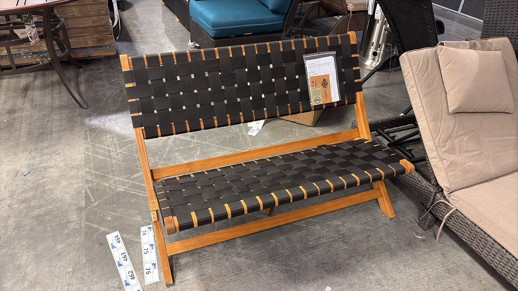 PATIO FLARE BLACK WOVEN FOLDING WOODEN BENCH