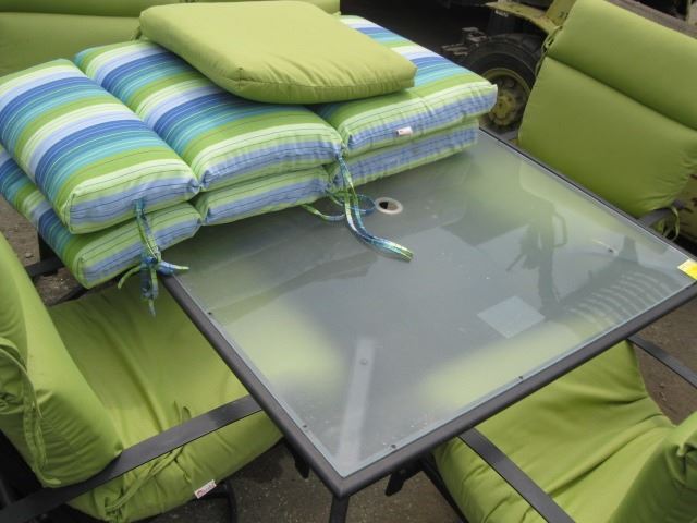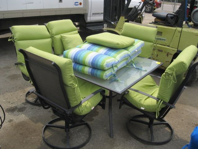 PATIO TABLE WITH 5 SWIVEL CHAIRS & CUSHIONS