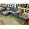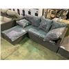 PATIOFLARE LIGHT GREY PATIO SECTIONAL WITH GREY PILLOWS, AND END TABLE