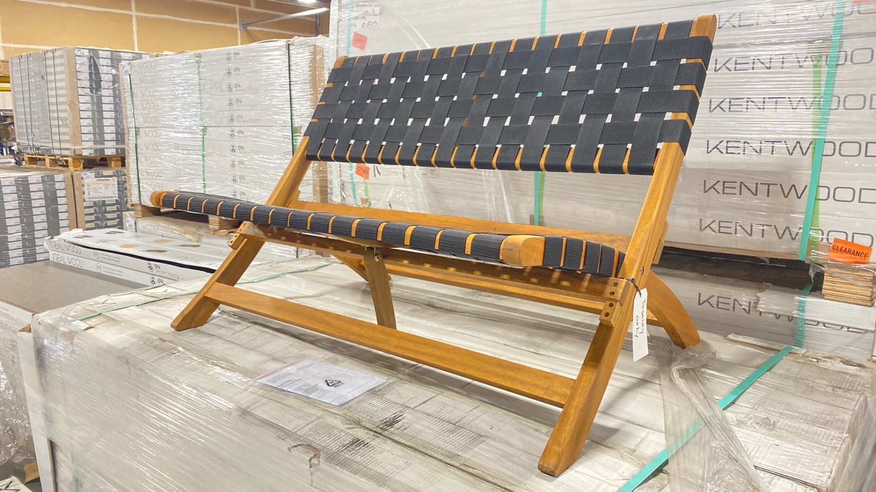 PATIOFLARE PF10014 TEAK FRAMED BLACK MESH FOLDING 2 SEAT OUTDOOR PATIO BENCH *IN BOX*