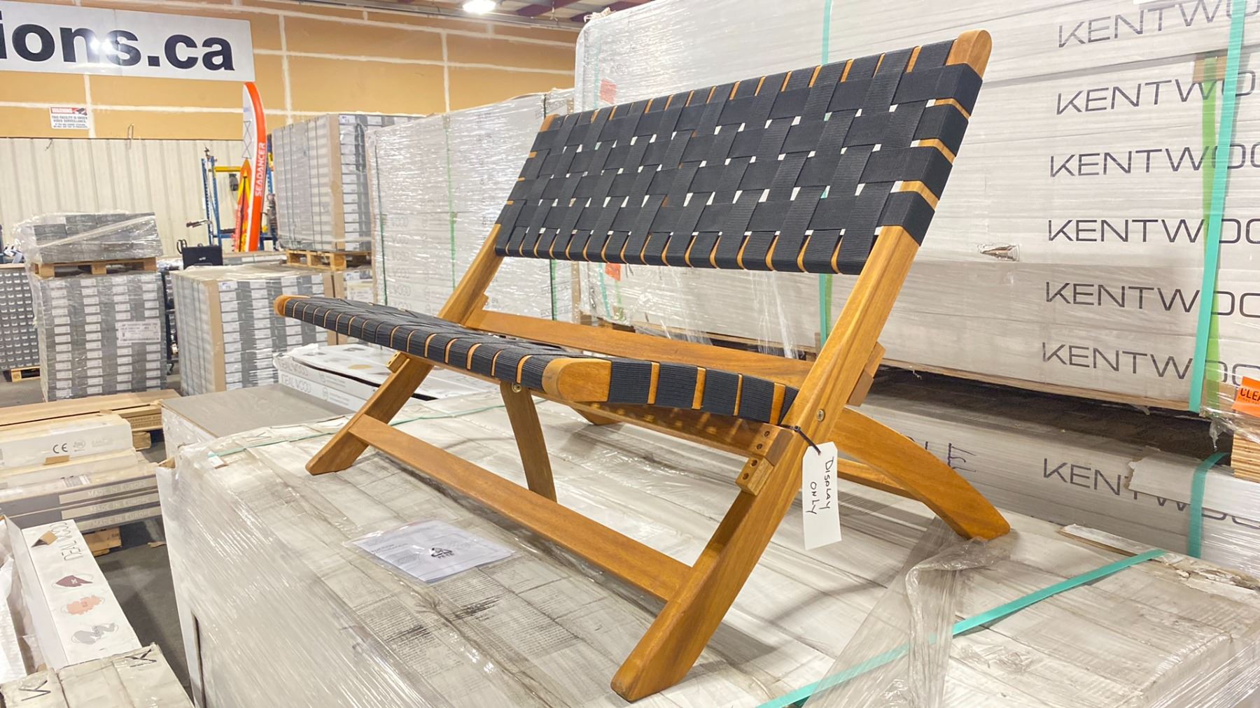 PATIOFLARE PF10014 TEAK FRAMED BLACK MESH FOLDING 2 SEAT OUTDOOR PATIO BENCH *IN BOX*